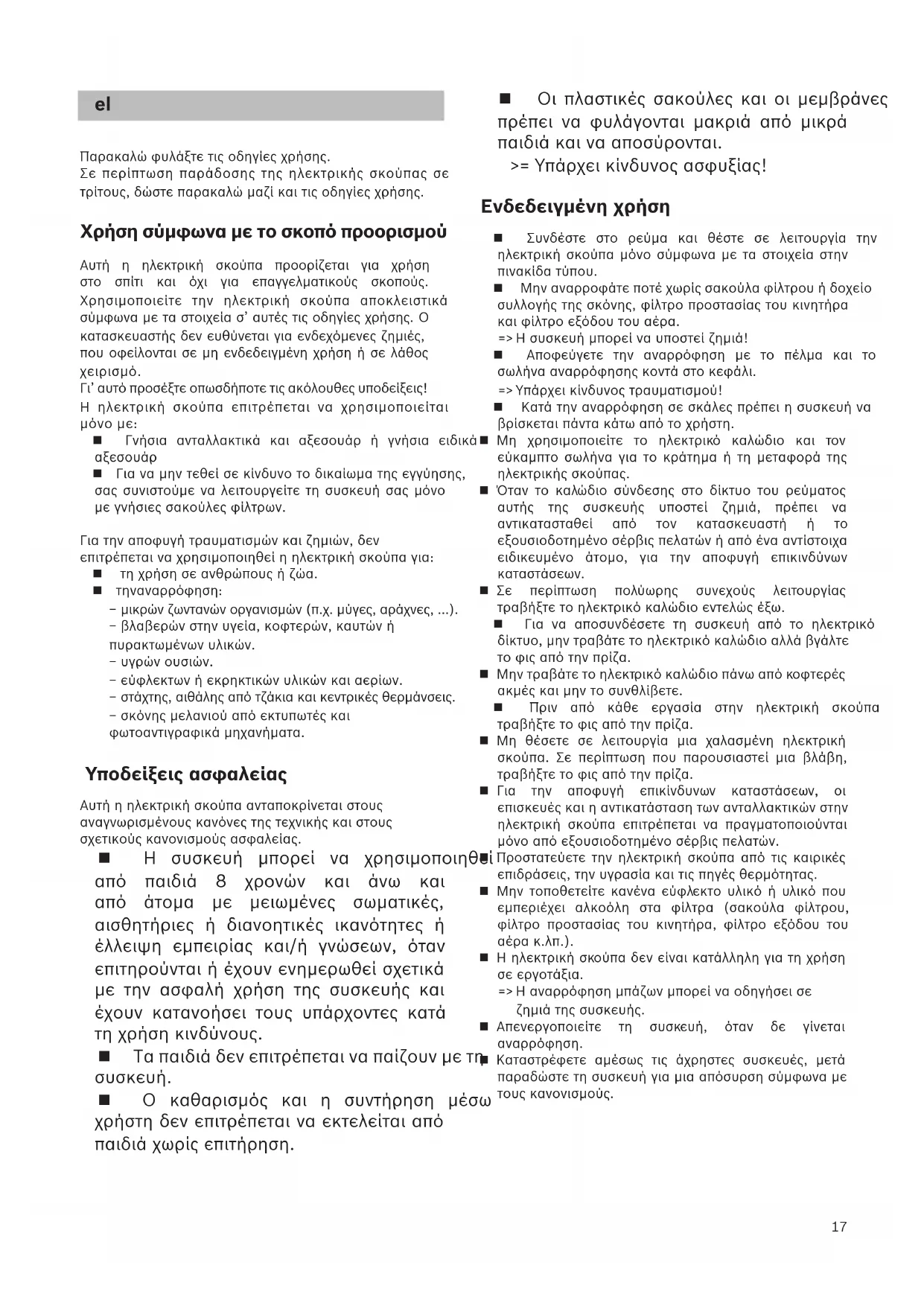 Αυτή η ηλεκτρική σκούπα προορίζεται για χρήση