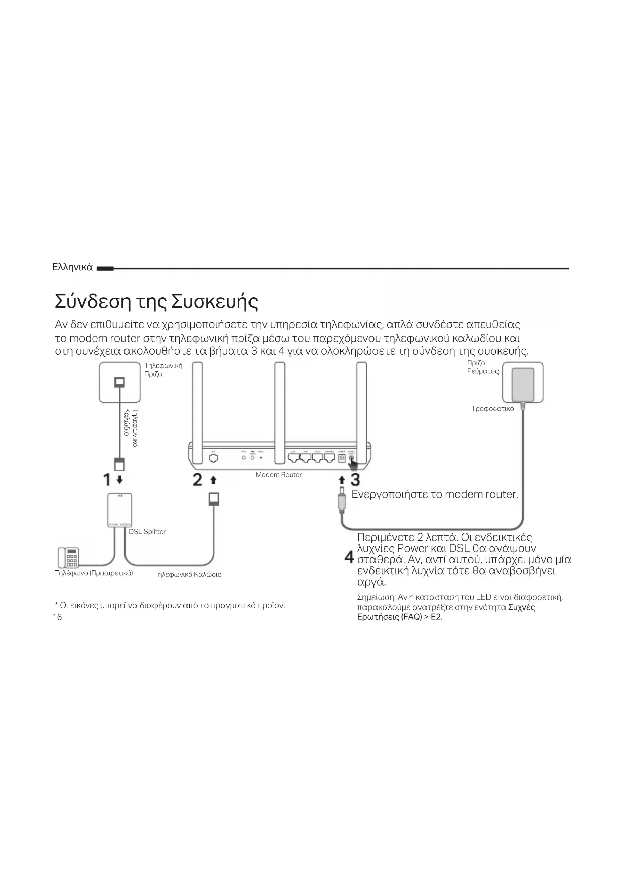 το modem router ακολουθώντας τις οδηγίες που υπάρχουν σε αυτό τον Οδηγό Γρήγορης Εγκατάστασης (Quick Installation