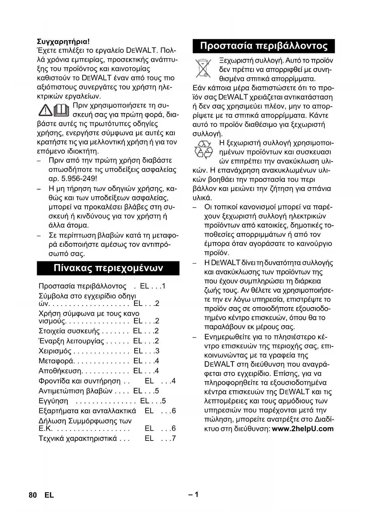 D EWALT, καλέστε το αντίστοιχο τηλεφωνι-