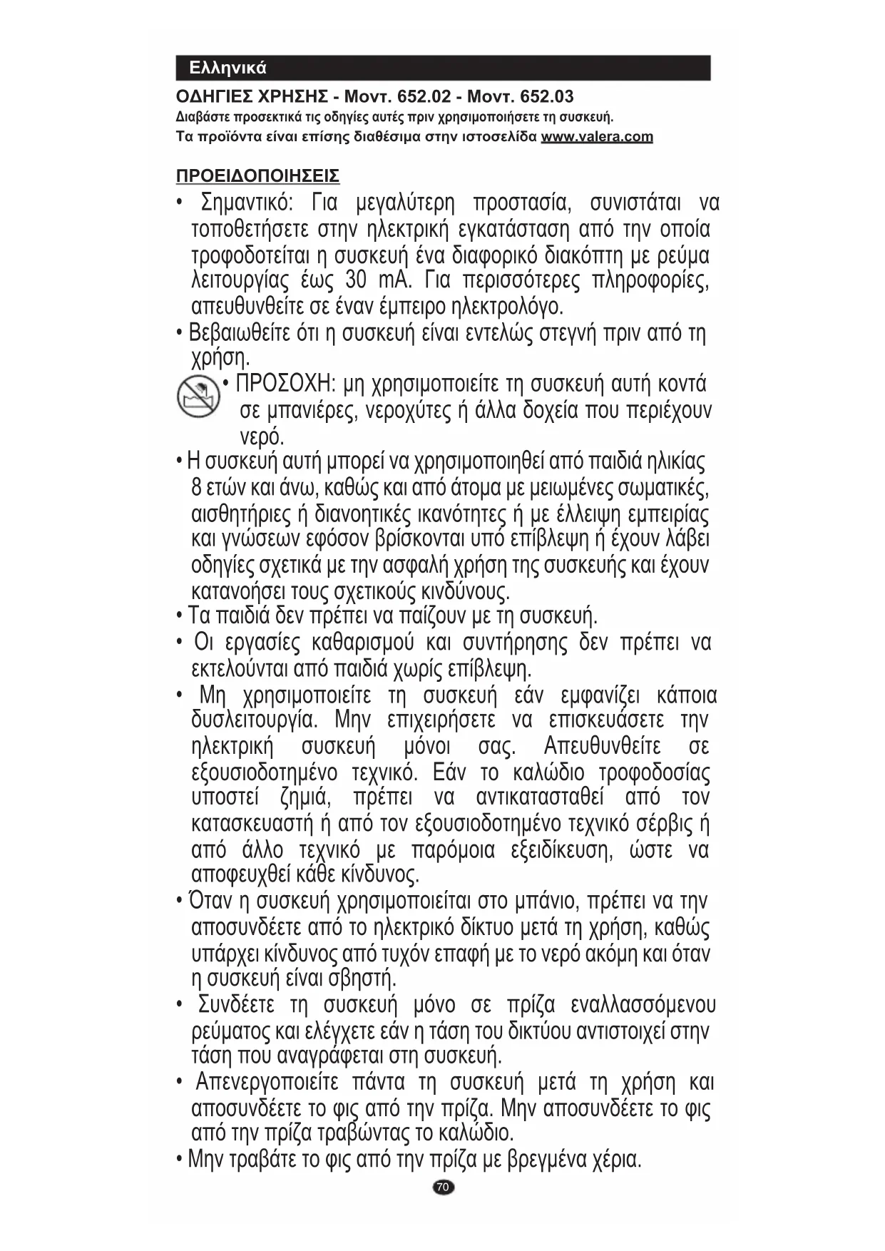 Τα προϊόντα είναι επίσης διαθέσιμα στην ιστοσελίδα www.valera.com