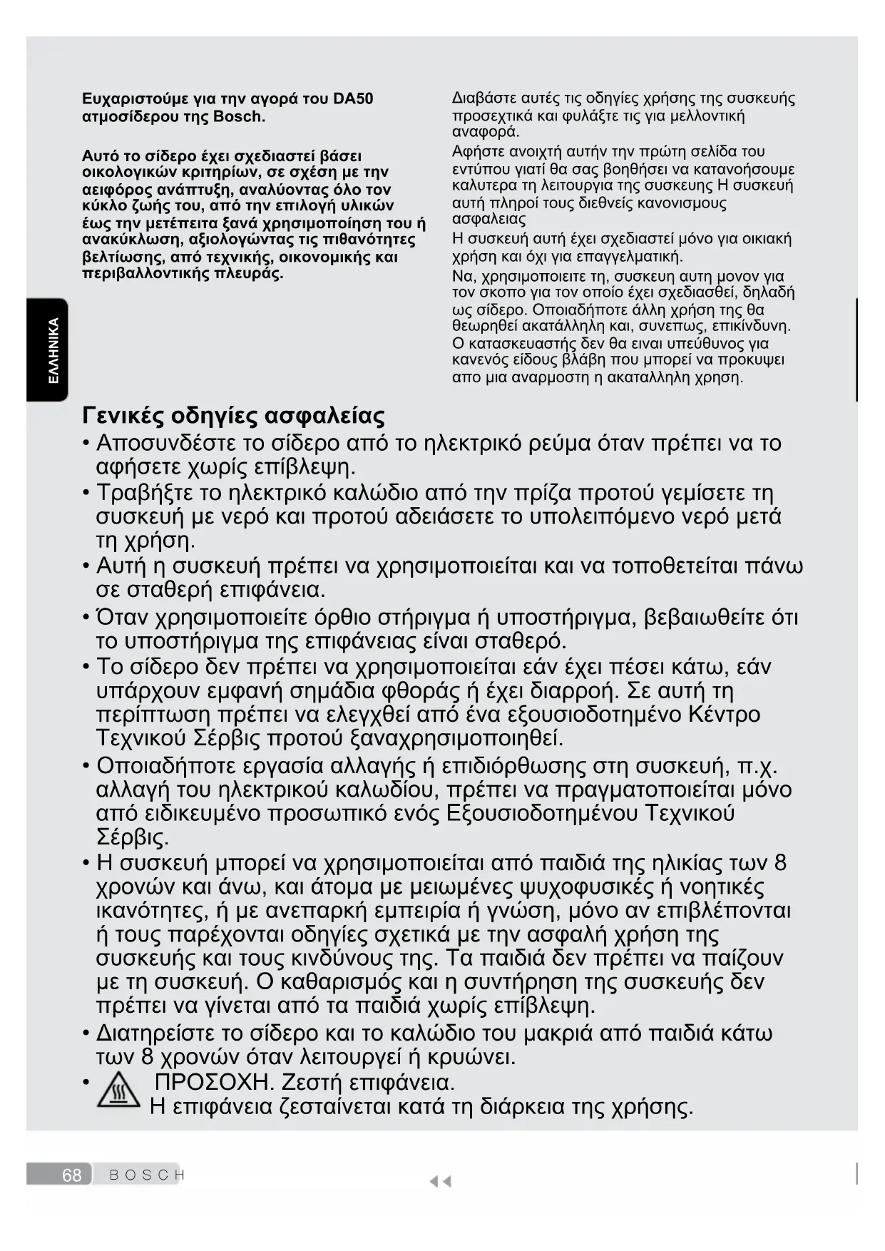 Η επιφάνεια ζεσταίνεται κατά τη διάρκεια της χρήσης.69 B O S C H