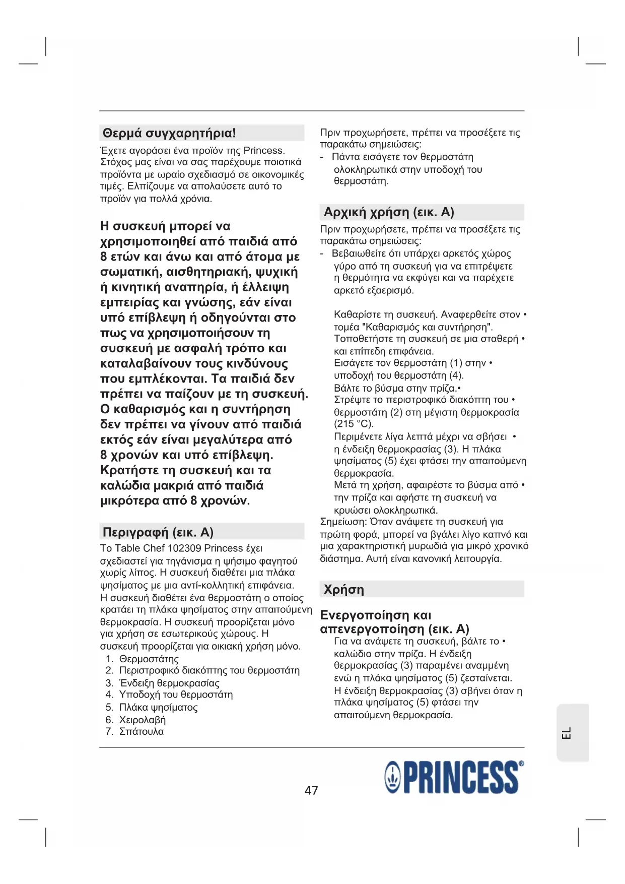 συσκευή προορίζεται για οικιακή χρήση μόνο.