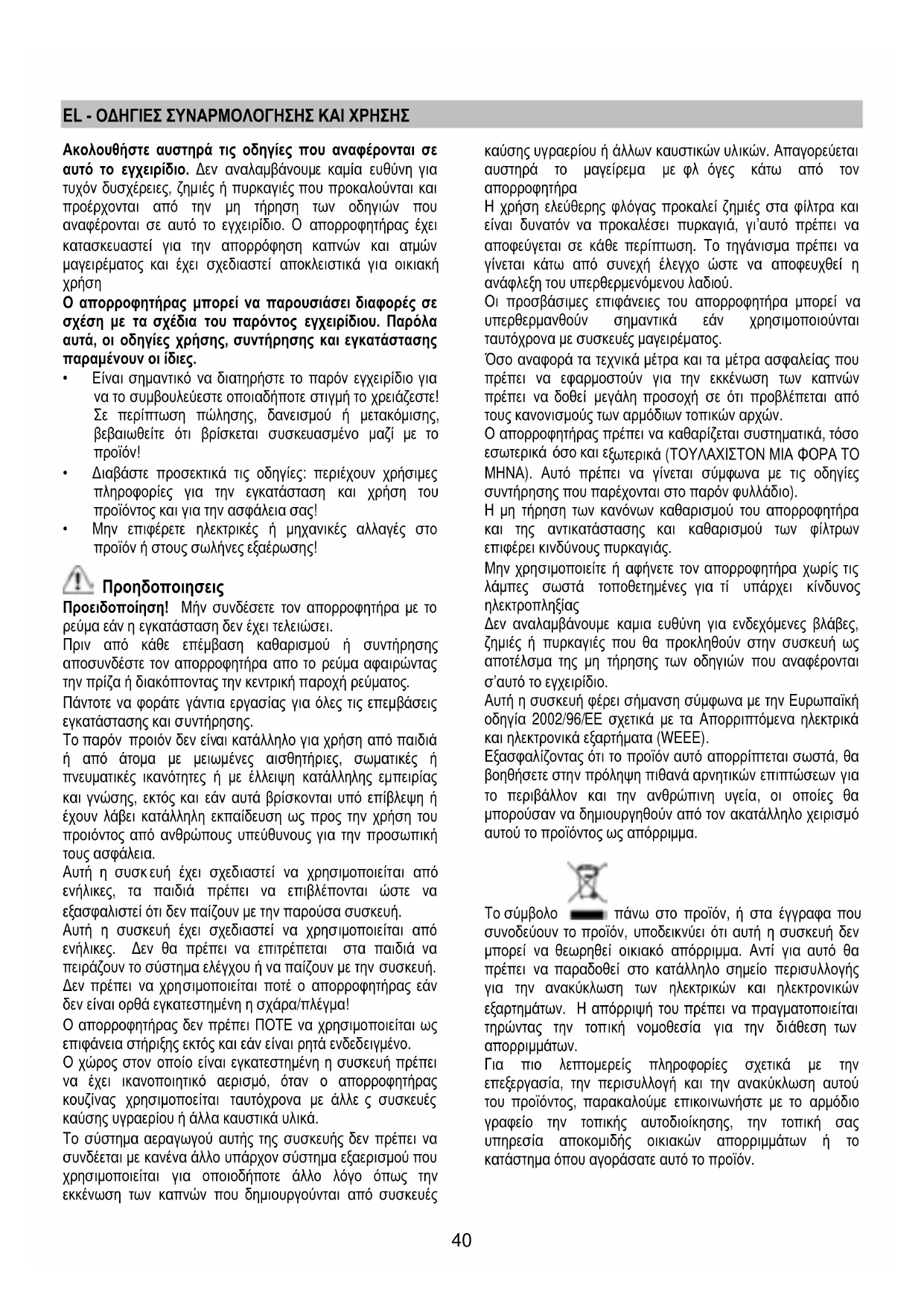 αναφέρονται σε αυτό το εγχειρίδιο. Ο απορροφητήρας έχει