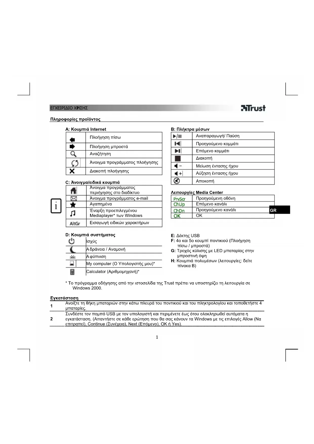 - Το πλήκτρο Alt Gr δίνει πρόσβαση στους ειδικούς χαρακτήρες, όπως, π.χ. το σύµβολο €. Περίληψη των ειδικών χαρακτήρων για κάθε χώρα θα βρείτε στη διεύθυνση: www.trust.com/keyboardlayout.