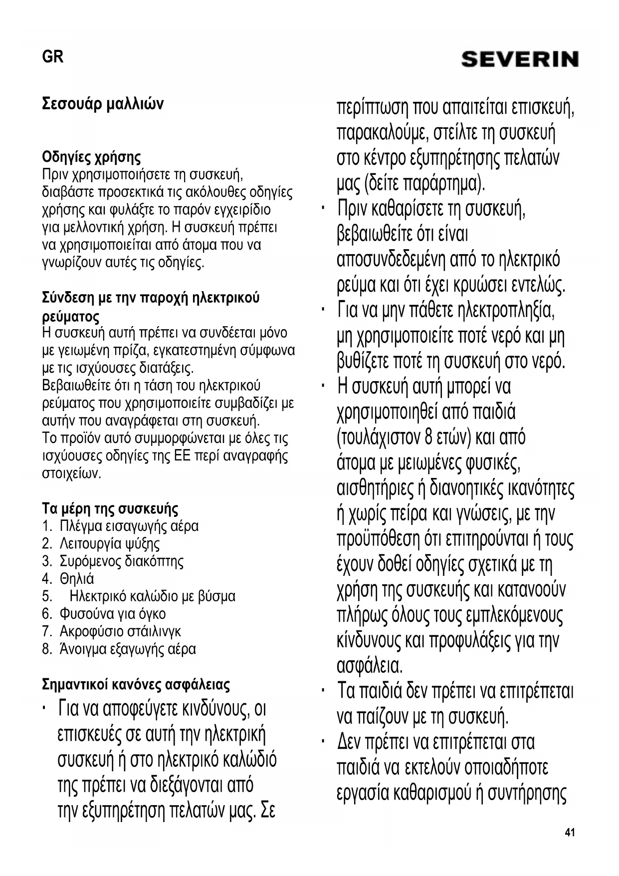 HT 0162 - Πιστολάκι μαλλιών SEVERIN - Notice d'utilisation et mode d'emploi gratuit