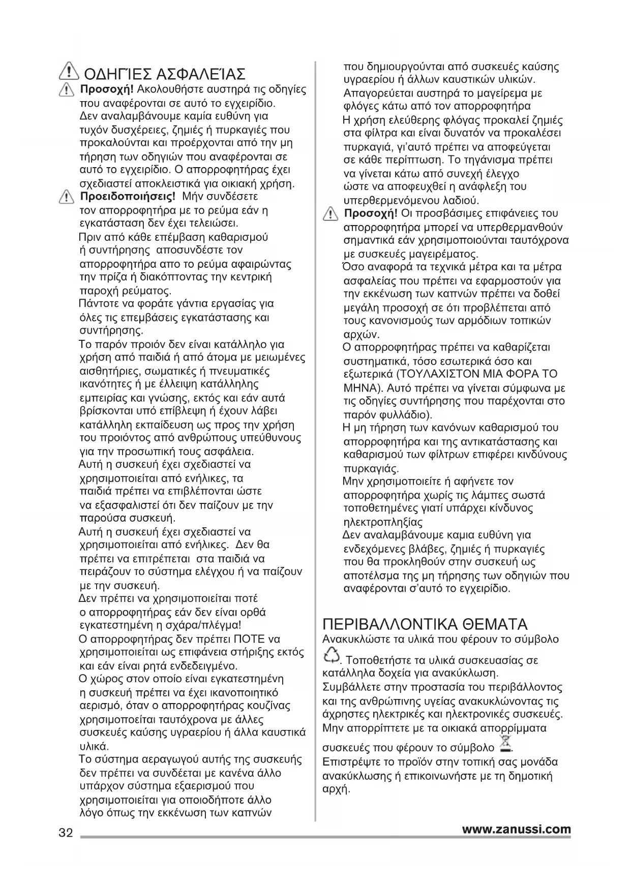 αυτό το εγχειρίδιο. Ο απορροφητήρας έχει
