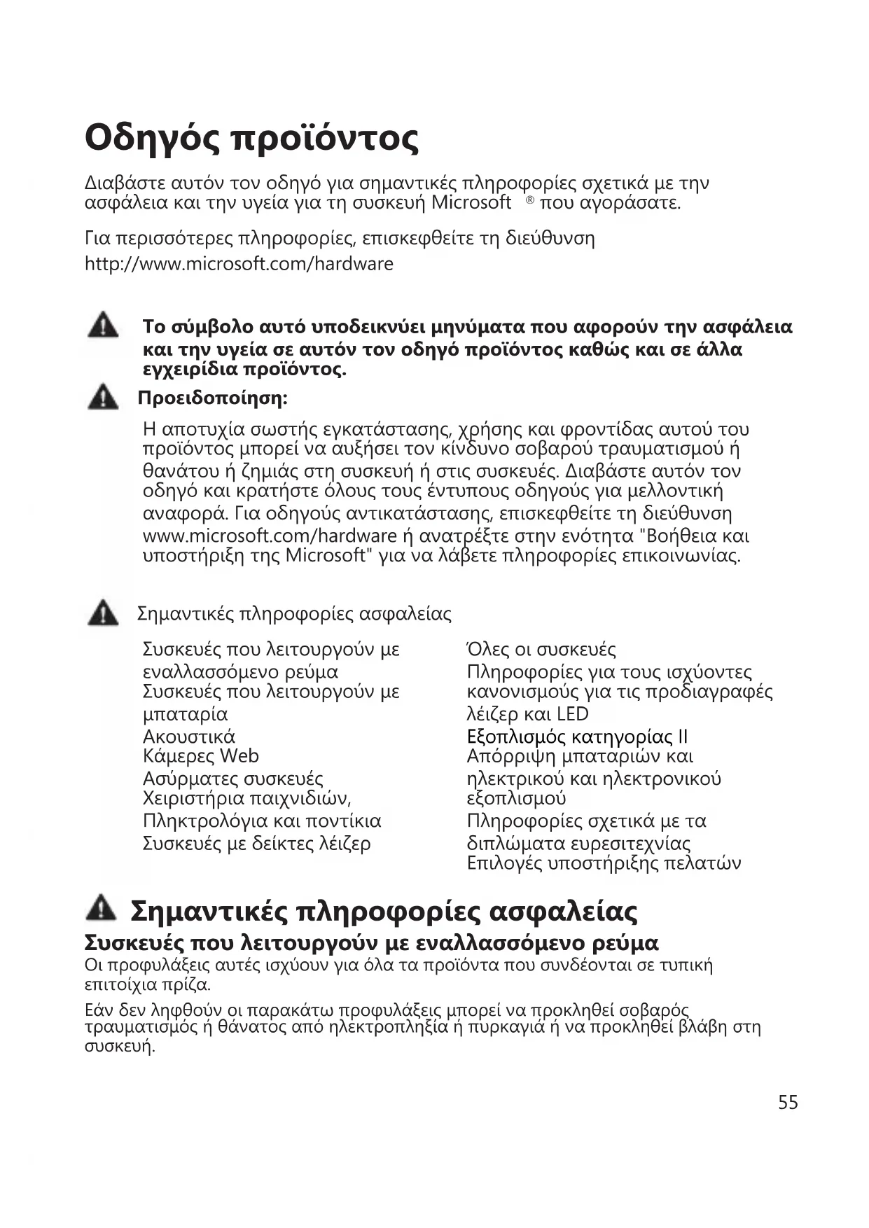 www.microsoft.com/hardware ή ανατρέξτε στην ενότητα "Βοήθεια και