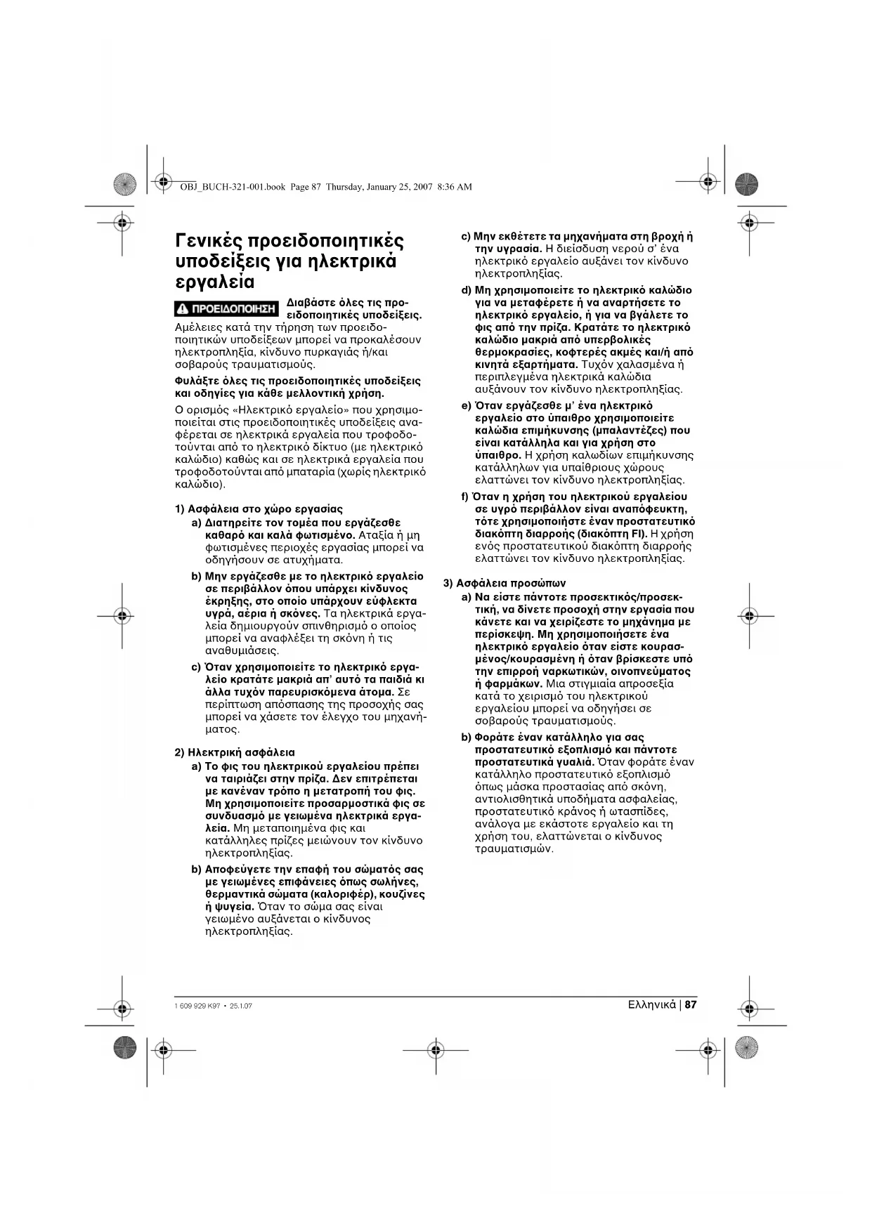 OBJ_BUCH-321-001.book Page 87 Thursday, January 25, 2007 8:36 AM88 | Eλληνικά 1 609 929 K97 • 25.1.07