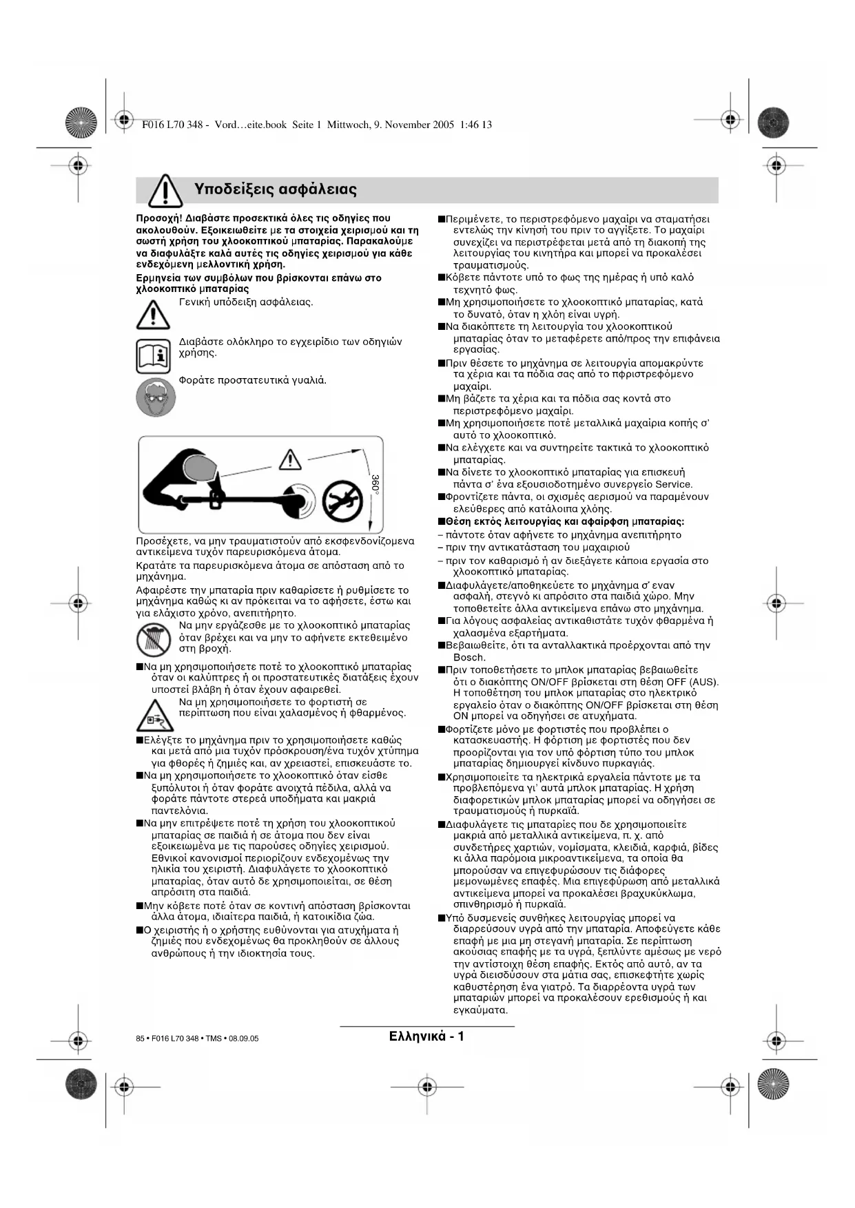 F016 L70 348 - Vord…eite.book Seite 7 Mittwoch, 9. November 2005 1:46 13 84 • F016 L70 348 • TMS • 08.09.05Eλληνικά - 1