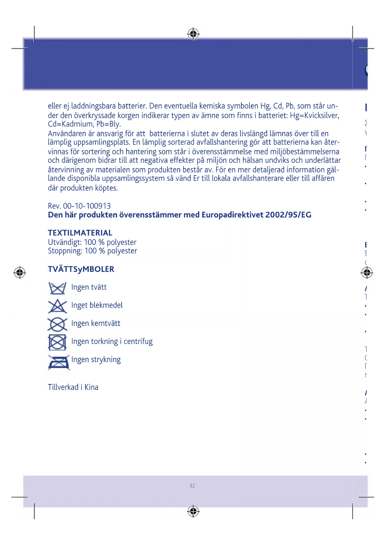 eller ej laddningsbara batterier. Den eventuella kemiska symbolen Hg, Cd, Pb, som står un-