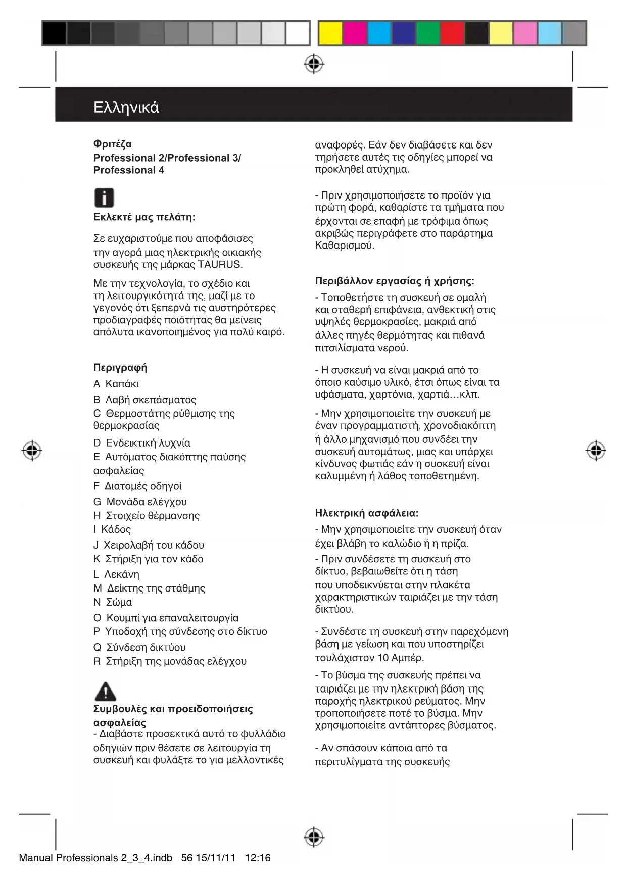 Professional 4L - φριτέζα TAURUS - Δωρεάν εγχειρίδιο χρήσης