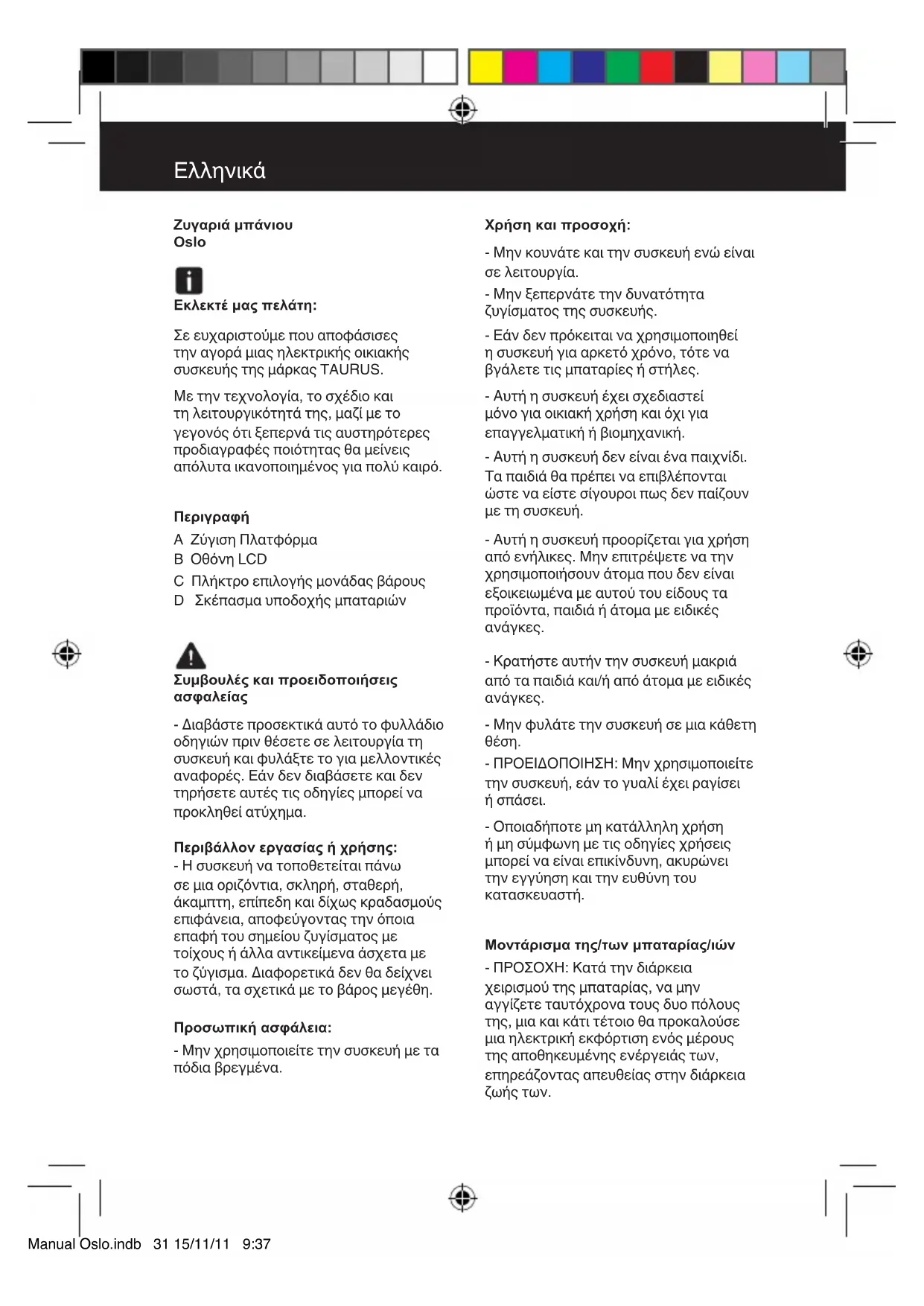 Oslo - Ζυγαριές TAURUS - Notice d'utilisation et mode d'emploi gratuit