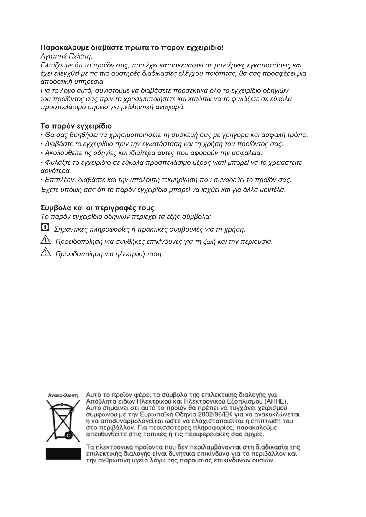 Για το λόγο αυτό, συνιστούμε να διαβάσετε προσεκτικά όλο το εγχειρίδιο οδηγιών