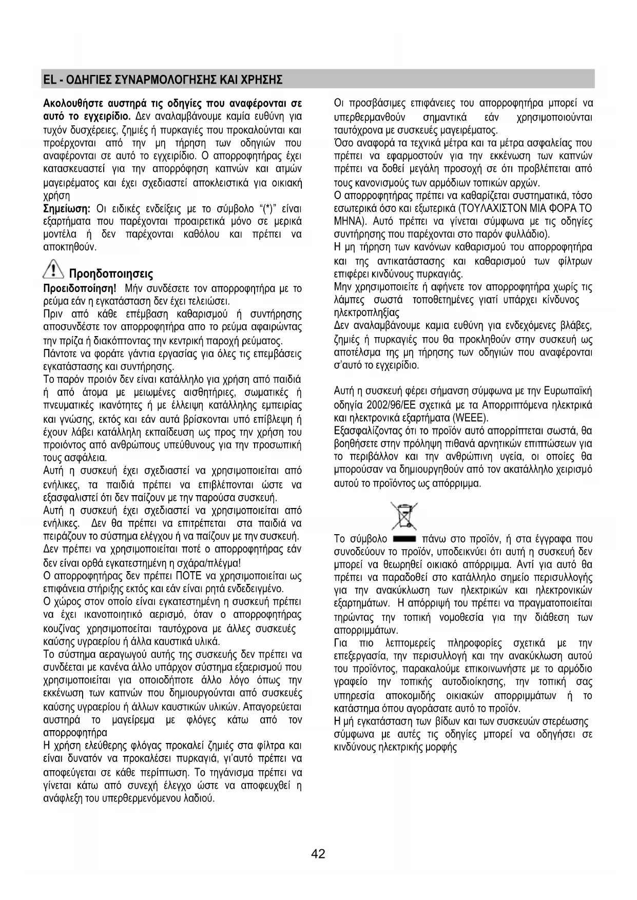 αναφέρονται σε αυτό το εγχειρίδιο. Ο απορροφητήρας έχει