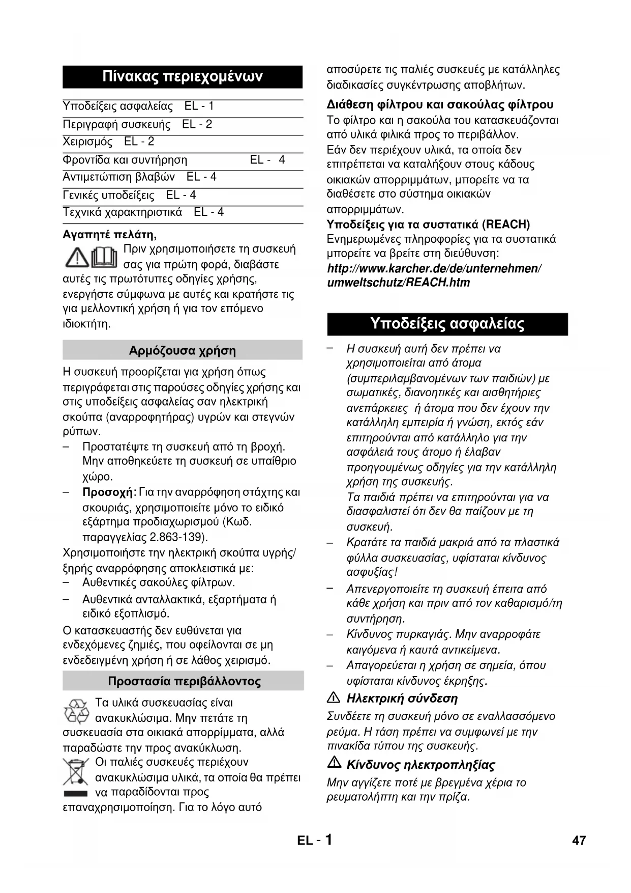 Υποδείξεις ασφαλείας EL - 1