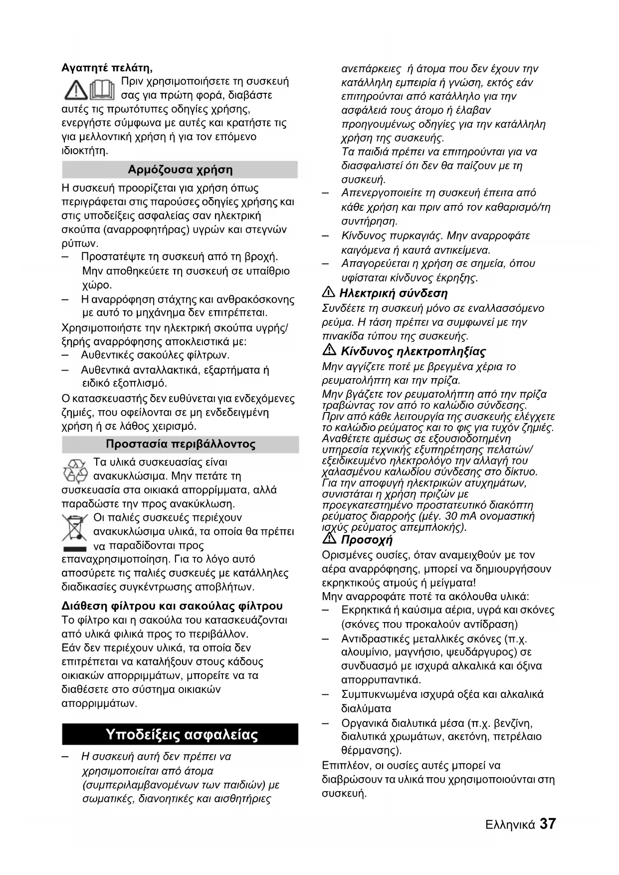 Υποδείξεις ασφαλείας38 Ελληνικά