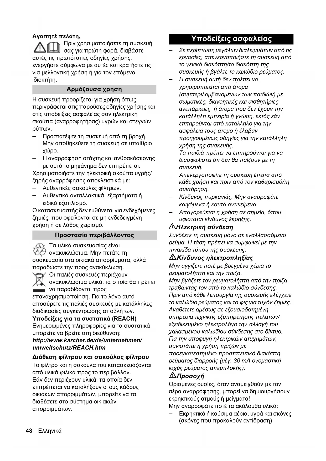 μπορείτε να βρείτε στη διεύθυνση: http://www.karcher.de/de/unternehmen/umweltschutz/REACH.htm Το φίλτρο και η σακούλα του κατασκευάζονται