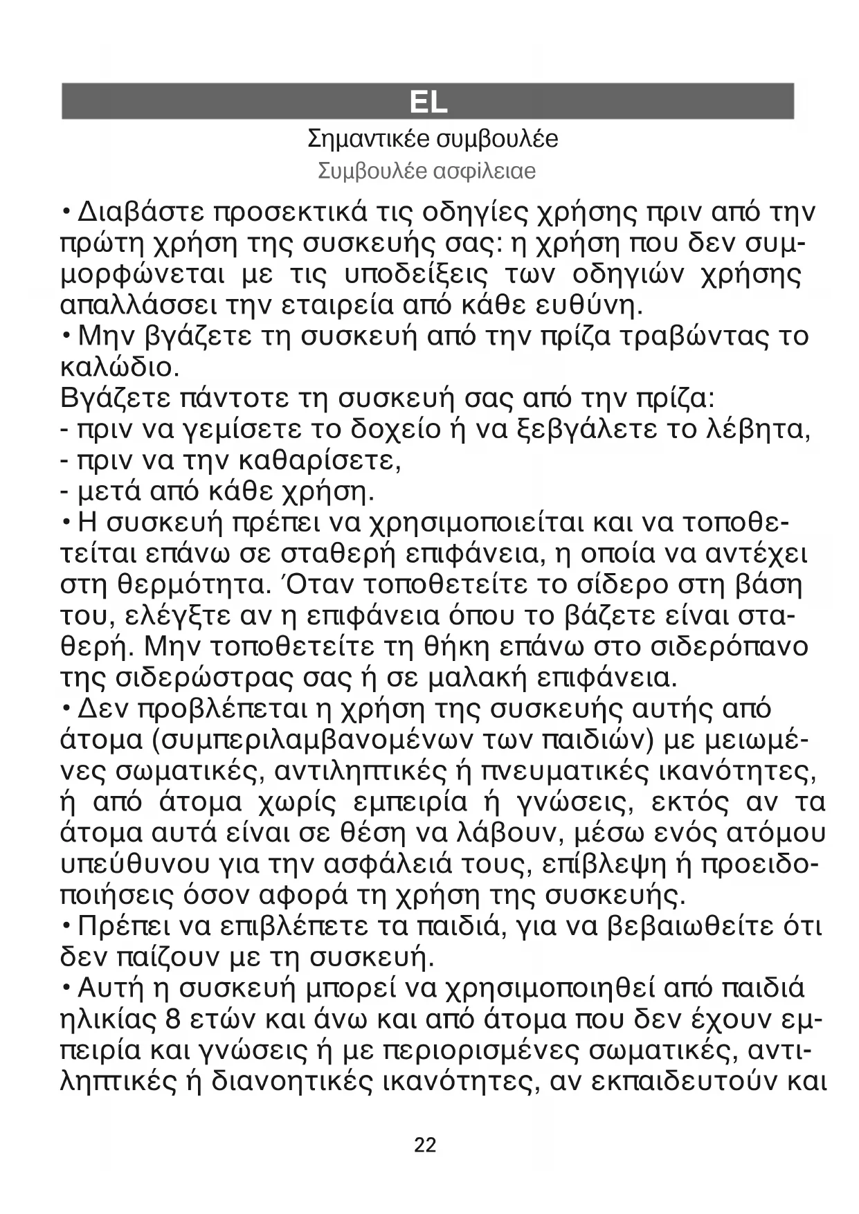 • Διαβάστε προσεκτικά τις οδηγίες χρήσης πριν από την