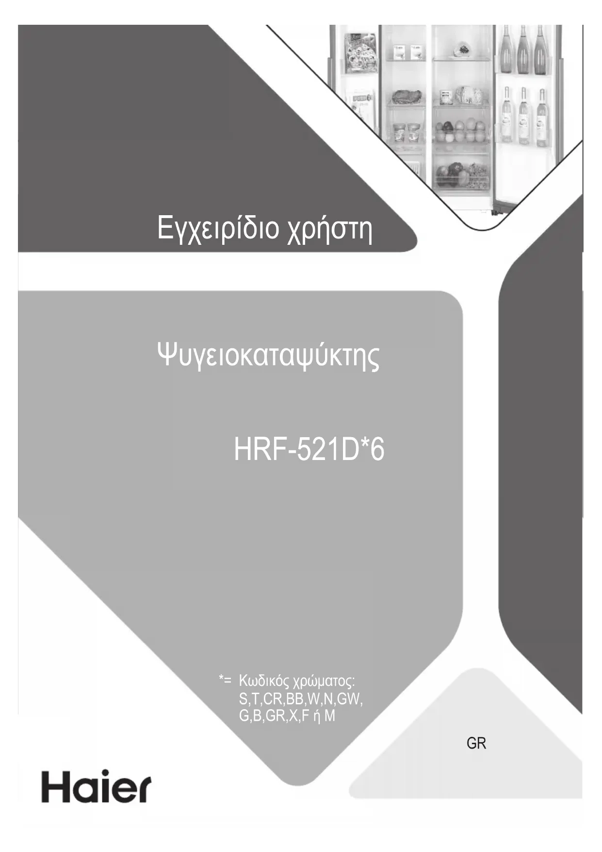 Εγχειρίδιο χρήστη Ψυγειοκαταψύκτης HRF-521D*6 *= Κωδικός χρώματος: S,T,CR,BB,W,N,GW, G,B,GR,X,F ή MGR GR Ευχαριστούμε