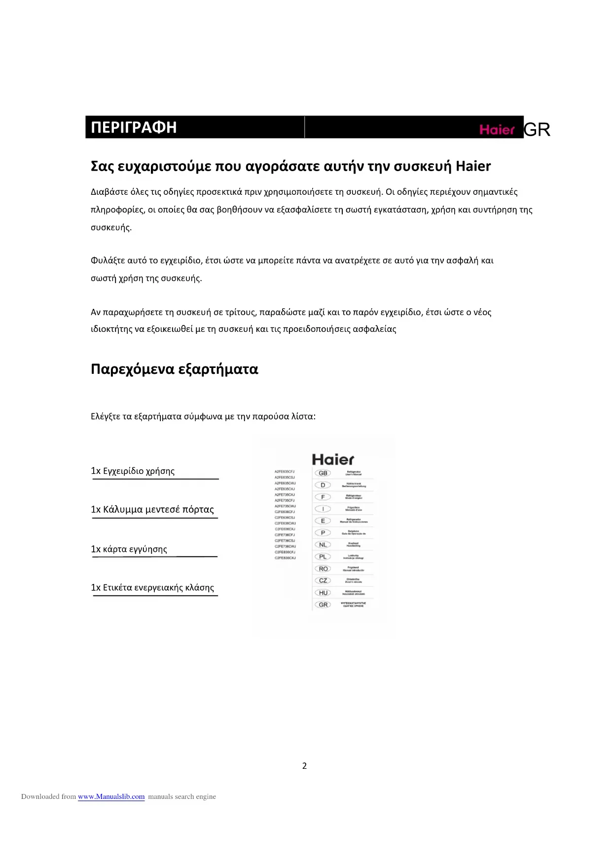Σας ευχαριστούμε που αγοράσατε αυτήν την συσκευή Haier