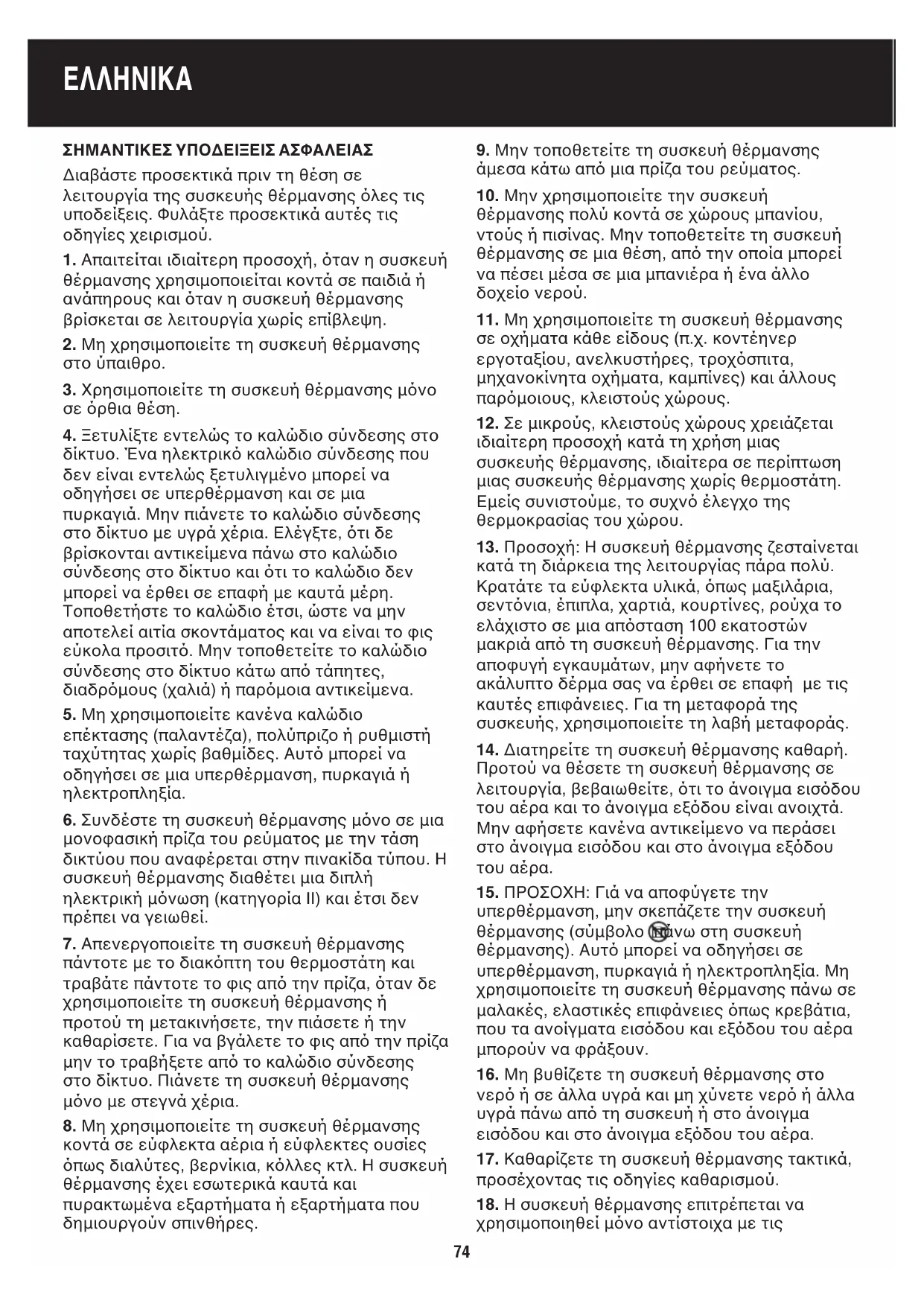 13. Προσοχή: Η συσκευή θέρμανσης ζεσταίνεται