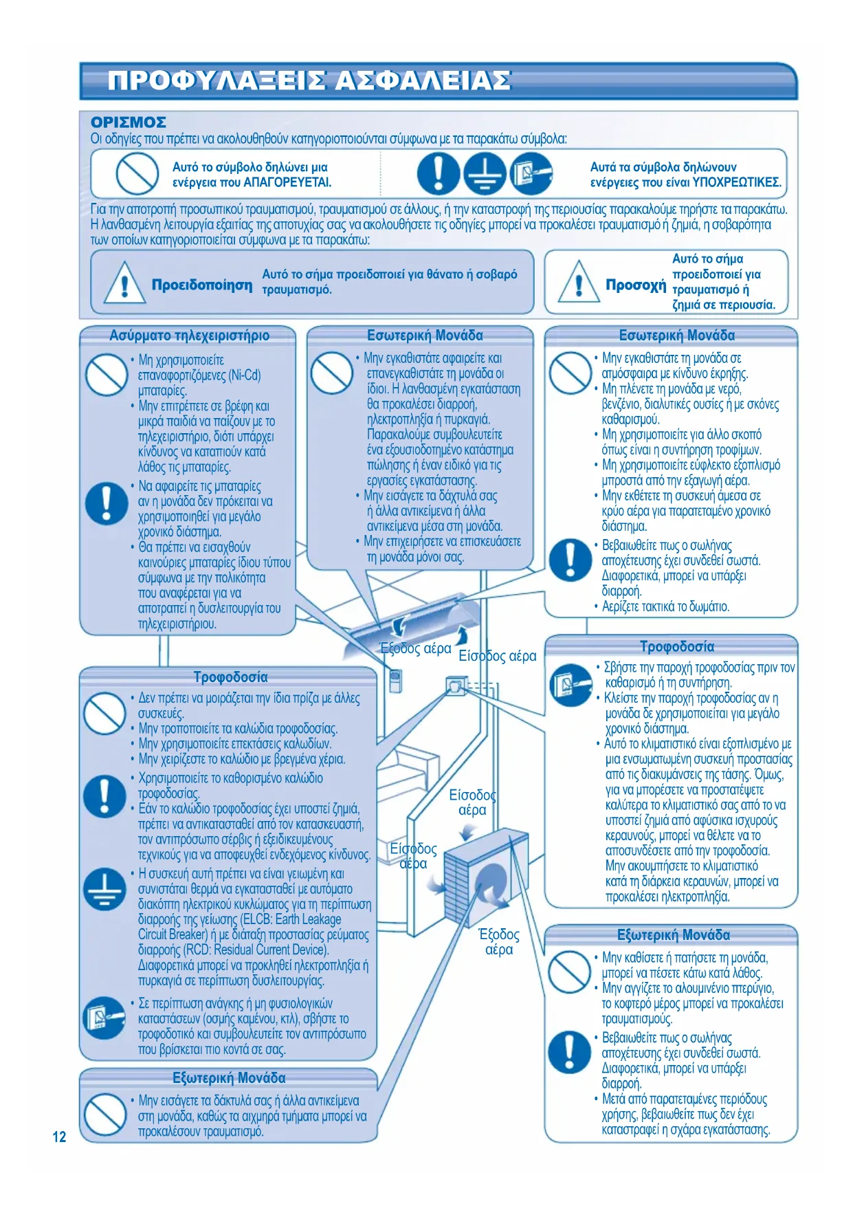 Οι οδηγίες που πρέπει να ακολουθηθούν κατηγοριοποιούνται σύμφωνα με τα παρακάτω σύμβολα: