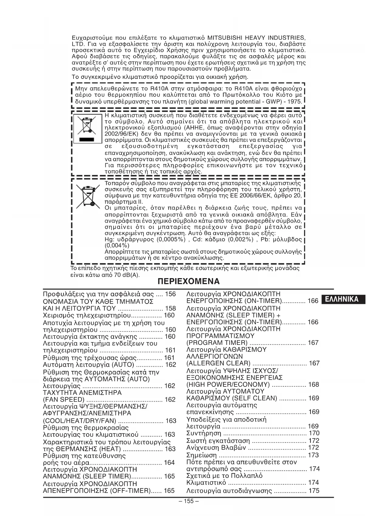 Ευχαριστούµε που επιλέξατε το κλιµατιστικ MITSUBISHI HEAVY INDUSTRIES,