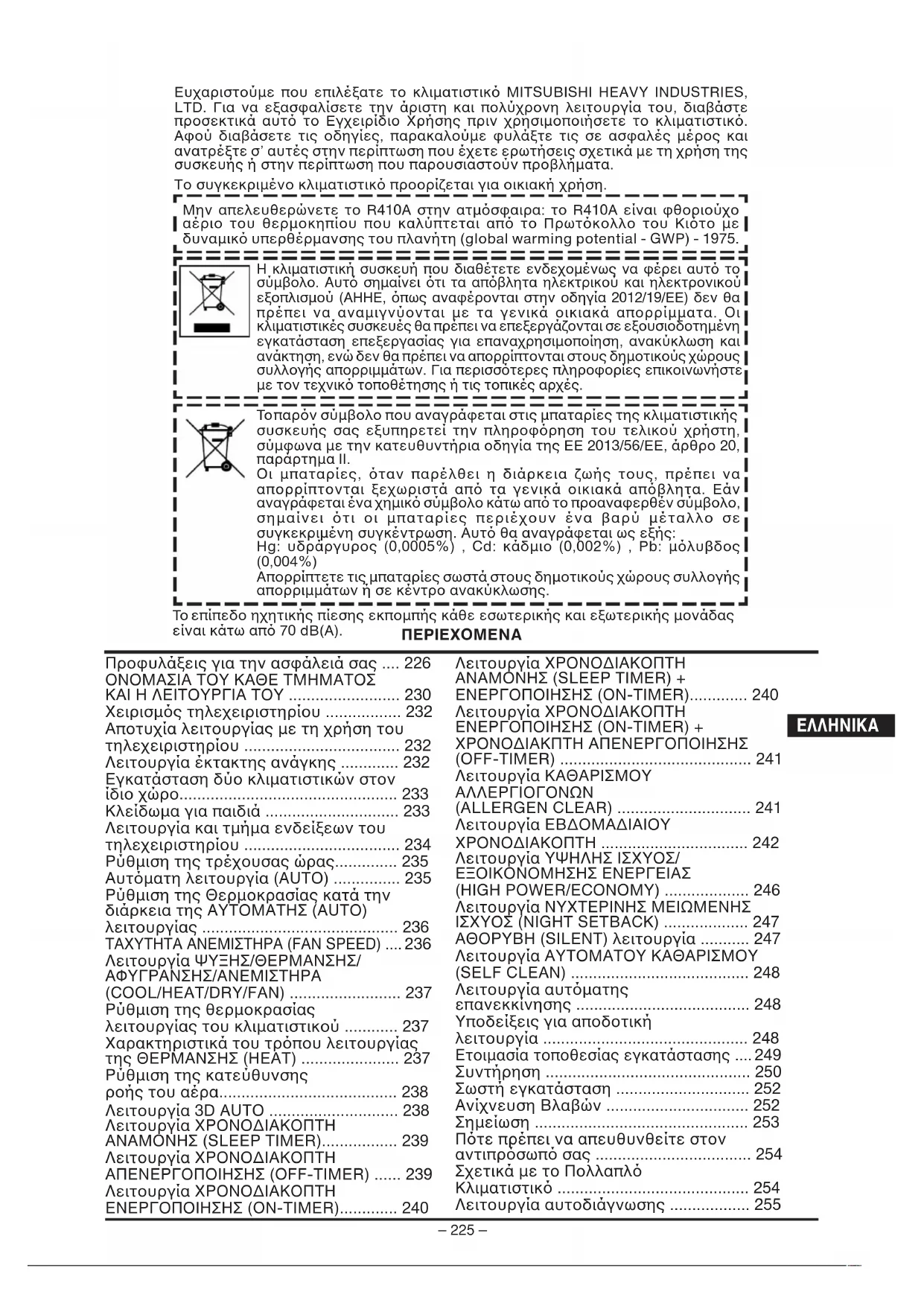 Ευχαριστούµε που επιλέξατε το κλιµατιστικ MITSUBISHI HEAVY INDUSTRIES,
