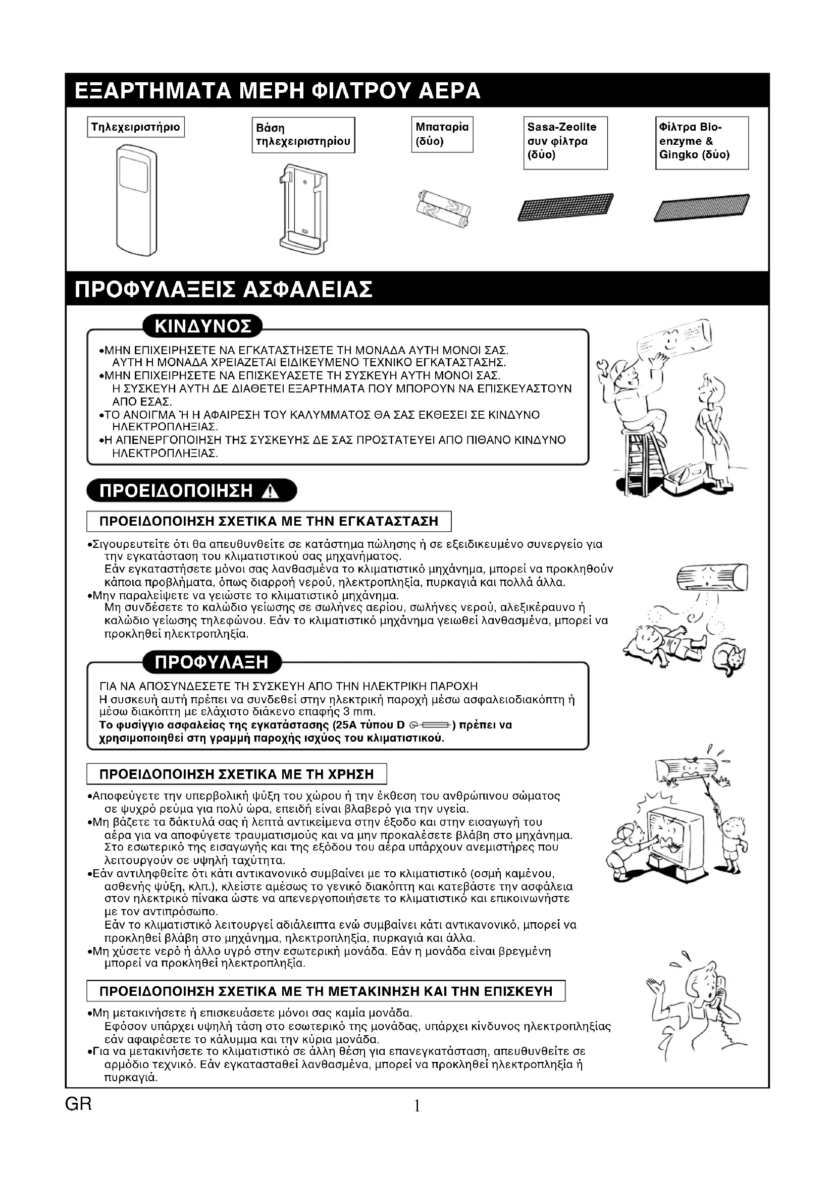 - Μη χύσετε νερ ή άλλο υγρ στην εσωτερική µονάδα. Εάν η µονάδα είναι βρεγµένη µπορεί να προκληθεί ηλεκτροπληξία. ΠΡΟΕΙ∆ΟΠΟΙΗΣΗ ΣΧΕΤΙΚΑ ΜΕ ΤΗ ΜΕΤΑΚΙΝΗΣΗ ΚΑΙ ΤΗΝ ΕΠΙΣΚΕΥΗ