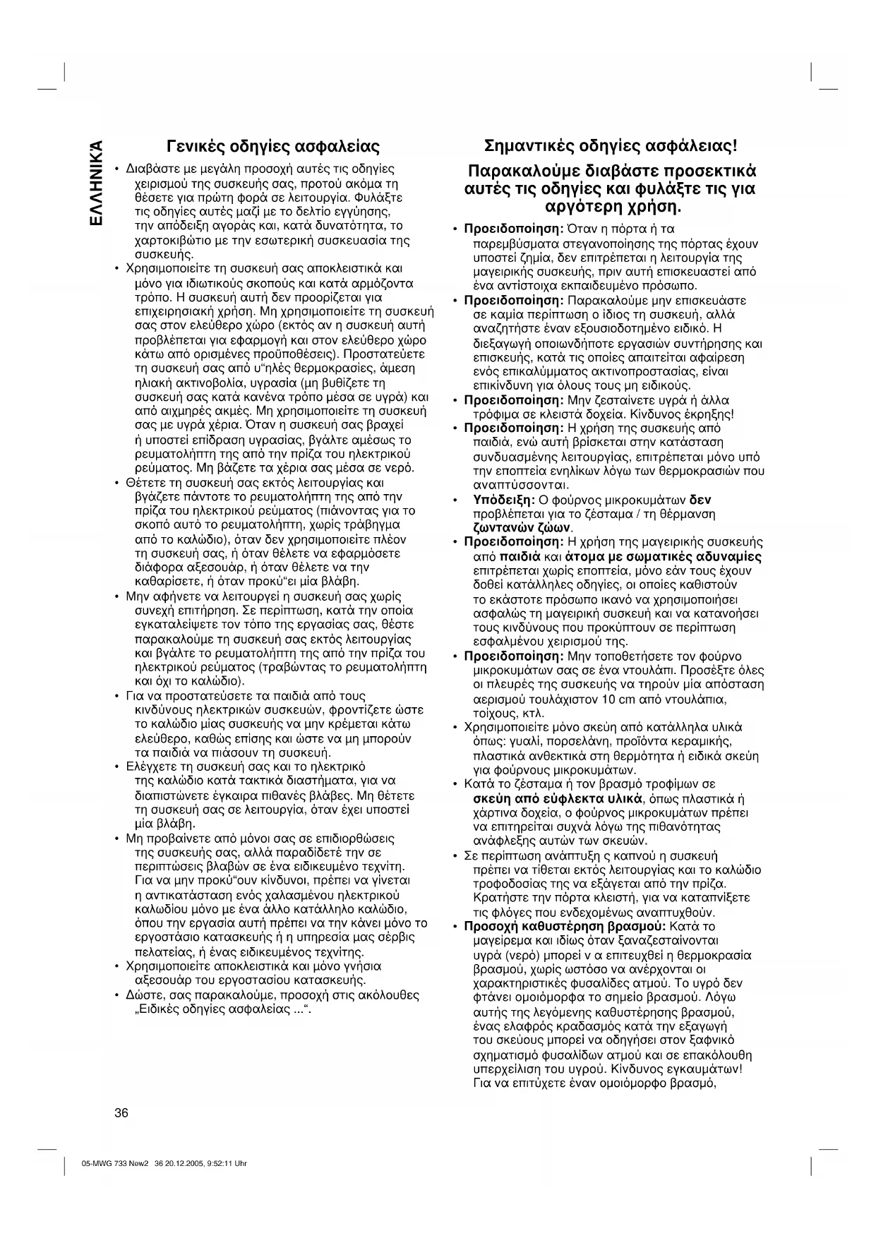- Παρακαλούμε μην χρησιμοποιείτε συμβατικά πλαστικά ή χάρτινα σκεύη. 05-MWG 733 New2 37 20.12.2005, 9:52:13 Uhr38