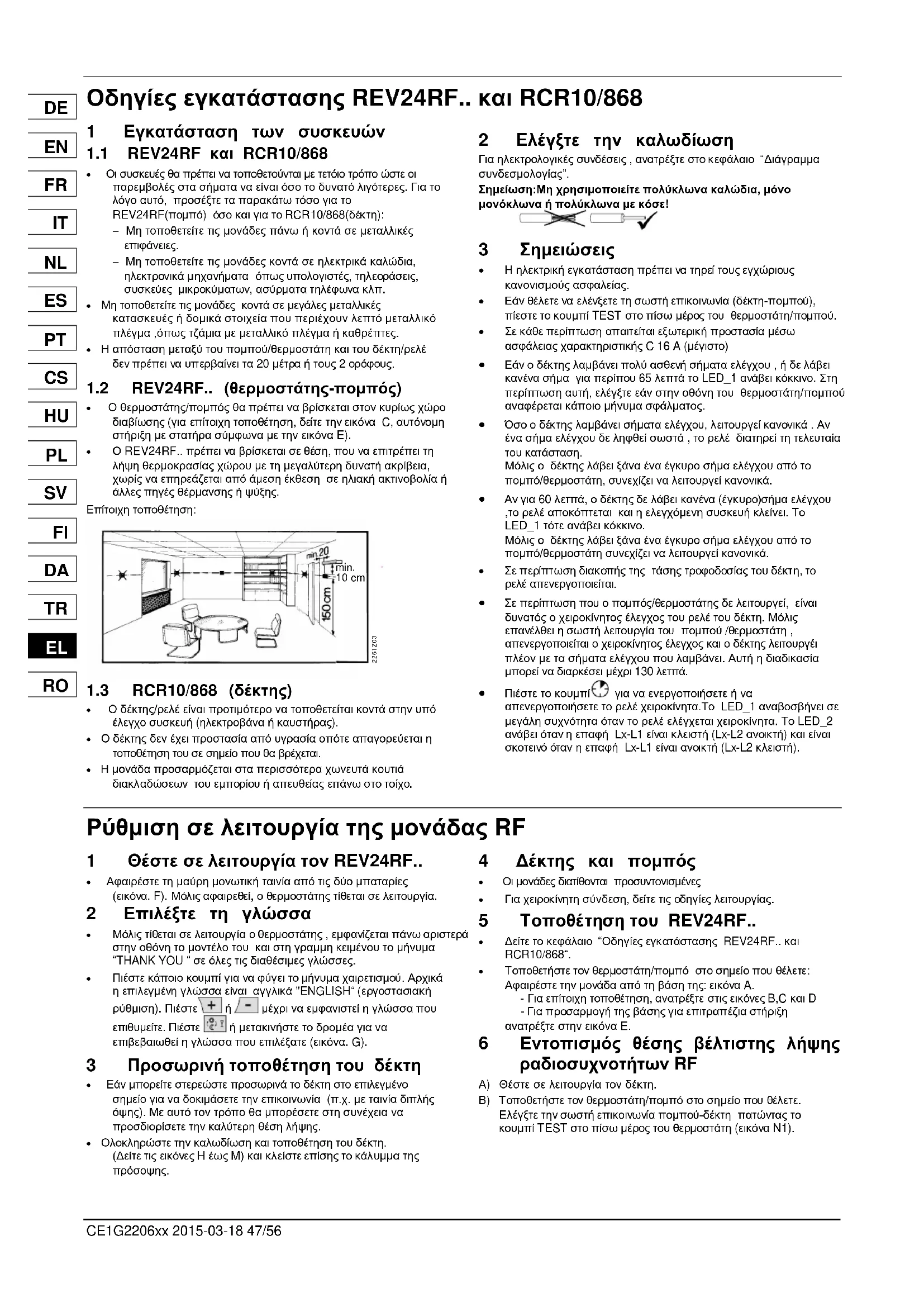 ROCE1G2206xx 2015-03-18 47/56 Οδηγίες εγκατάστασης REV24RF.. και RCR10/868 1 Εγκατάσταση των συσκευών