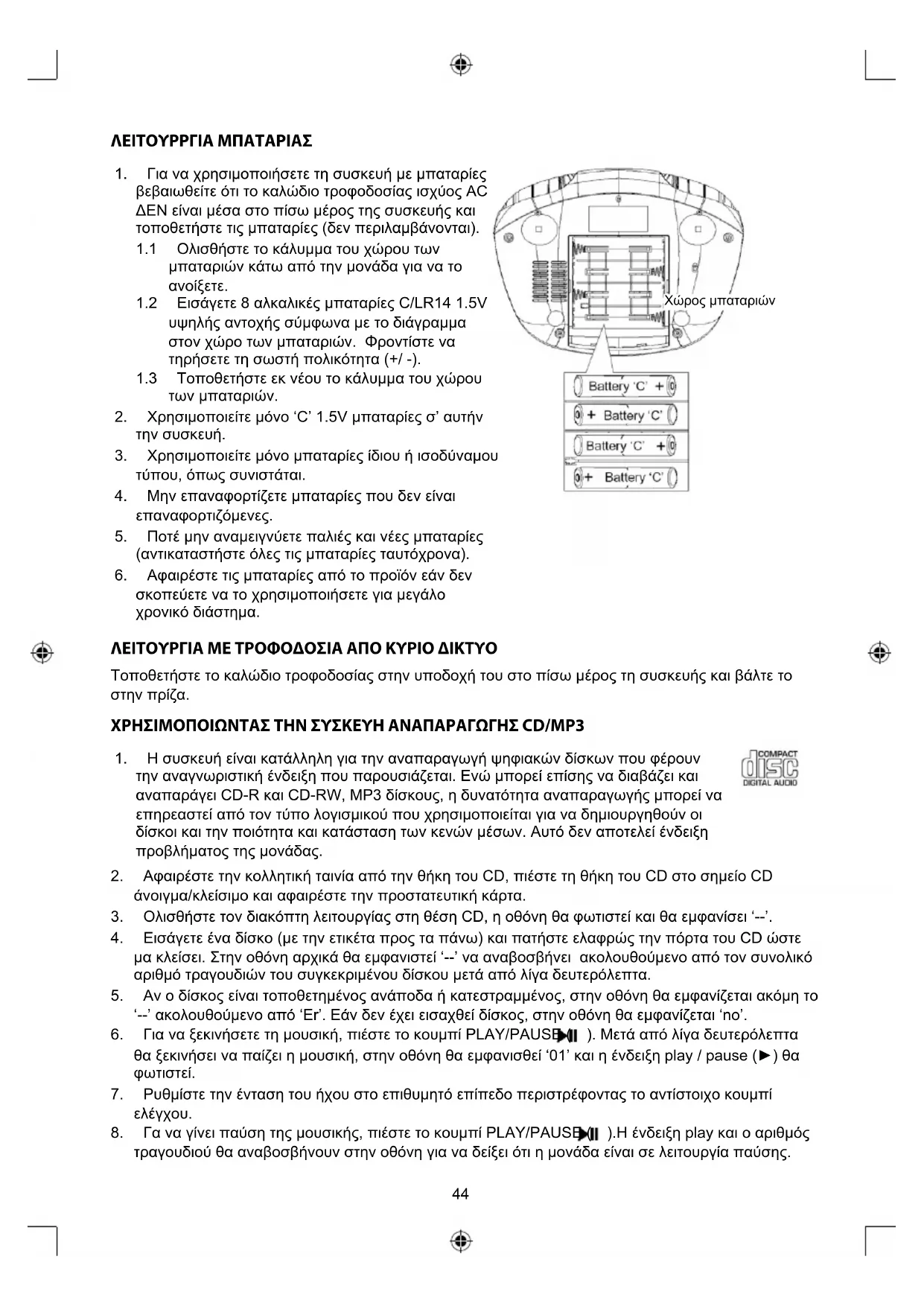 - Tia va μετακινηθείπω στην αρχή του τρέχοντος τρayouδιό, πίσετο το κουμπί SKIP / SEARCH πισω («). Πεότεξανá για va μετακινηθείπω στο προγούμενο τρayouδι. Στην oθόνηθα εμφανισθουύν τεπλεγμένα τρayouδία, autη n λειούργία πρayματοῦείται στην κατάσταη avattapaywyns, παισός και διακόπής.