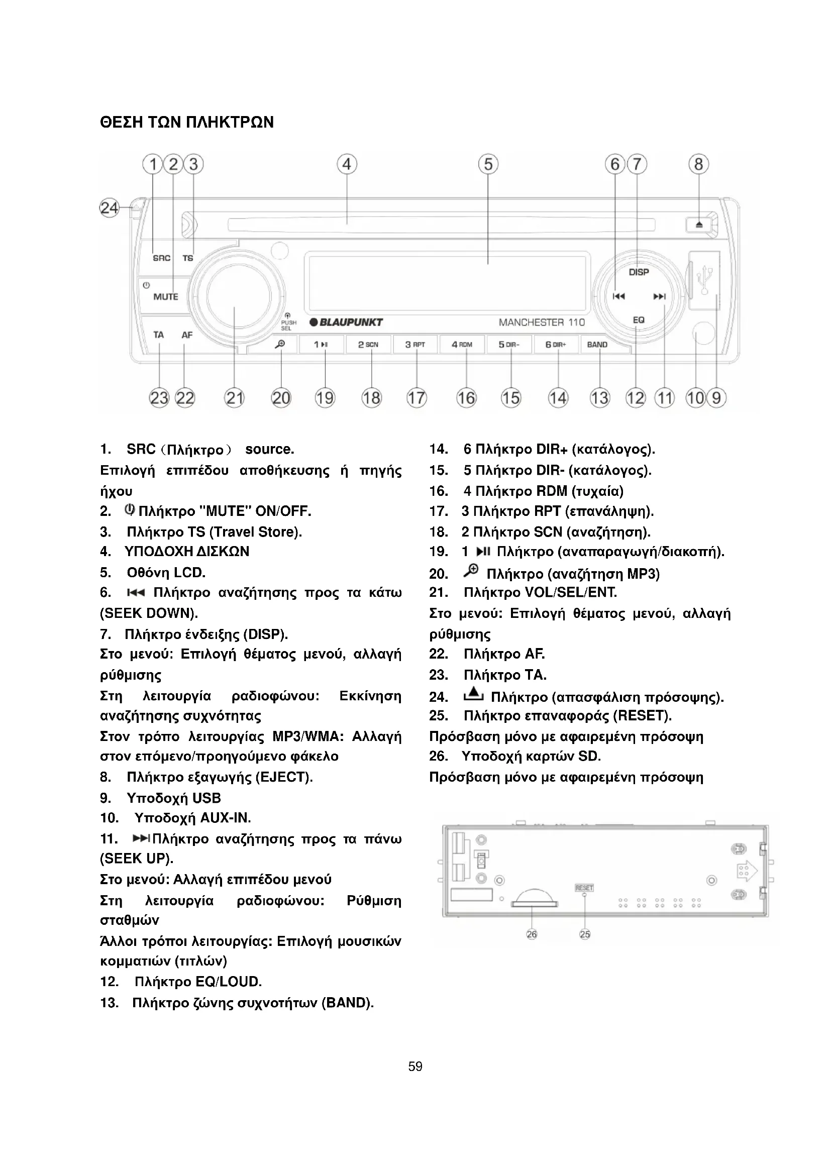 25. Πλήκτρο επαναφοράς (RESET).