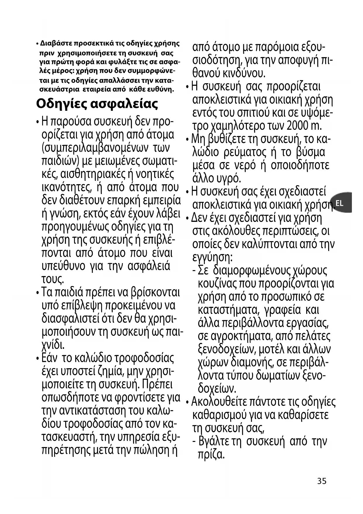 - Η συσκευή σας έχει σχεδιαστεί αποκλειστικά για οικιακή χρήση.