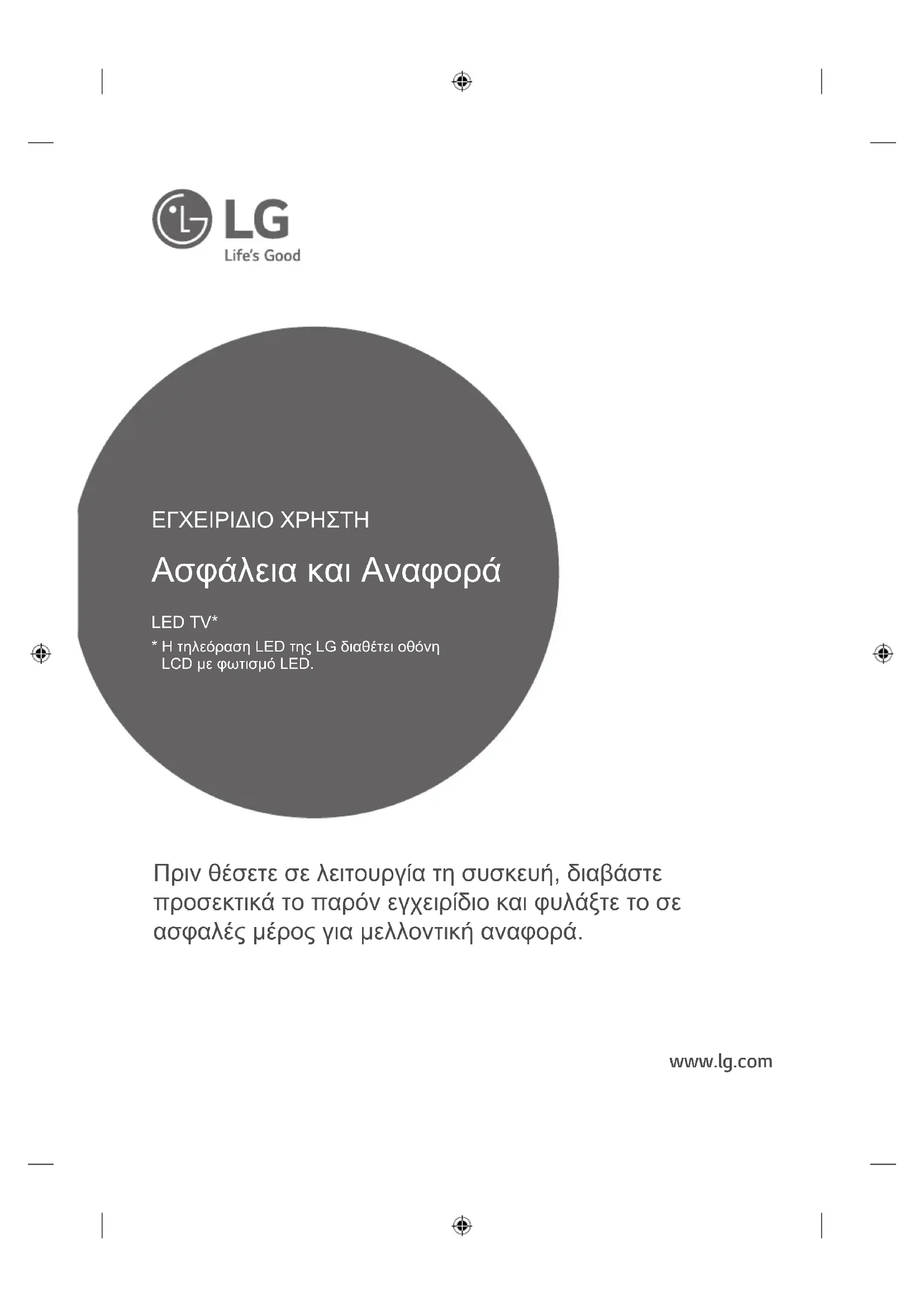 - Alleen modellen met DVB-T2/C/S/S2-ondersteuning.www.lg.com Πριν θέσετε σε λειτουργία τη συσκευή, διαβάστε προσεκτικά το παρόν εγχειρίδιο και φυλάξτε το σε ασφαλές μέρος για μελλοντική αναφορά. Ασφάλεια και Αναφορά ΕΓΧΕΙΡΙΔΙΟ ΧΡΗΣΤΗ LED TV*