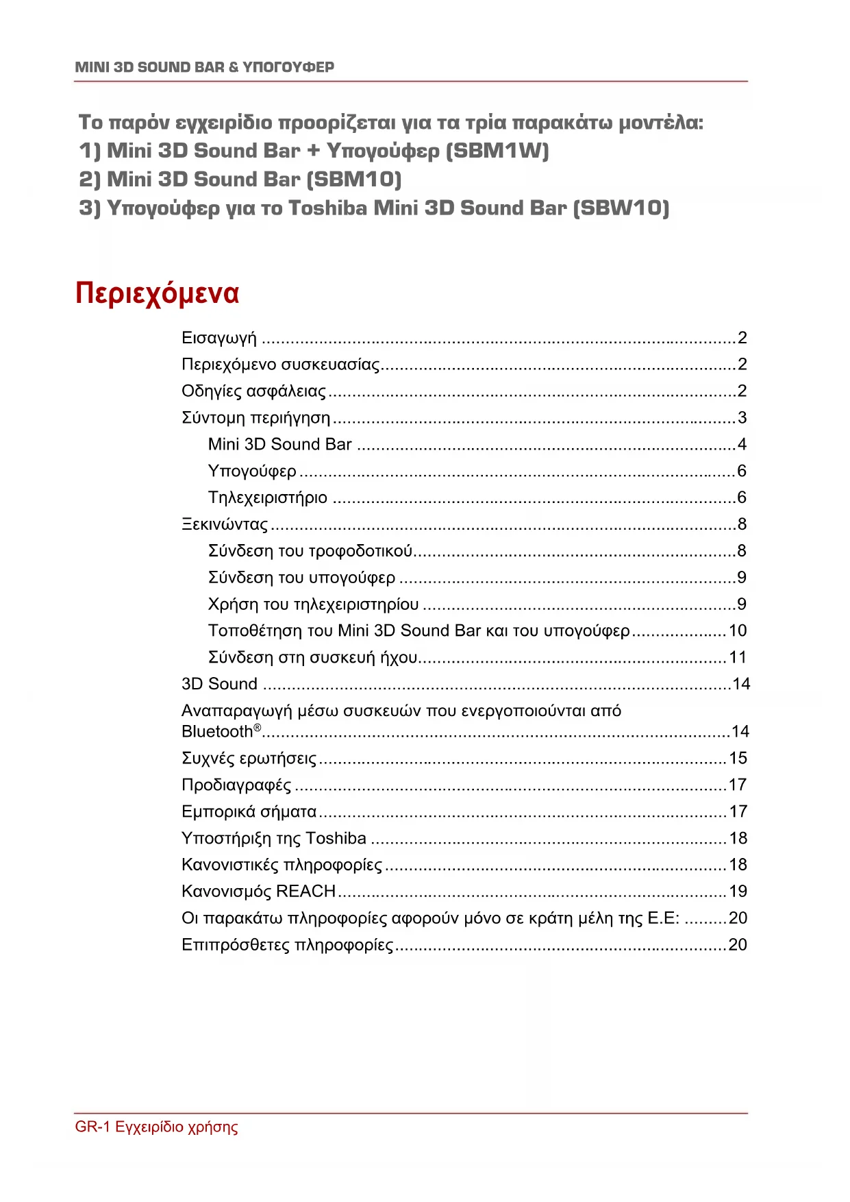 3) Υπογούφερ για το Toshiba Mini 3D Sound Bar (SBW10)Εγχειρίδιο χρήσης GR-2