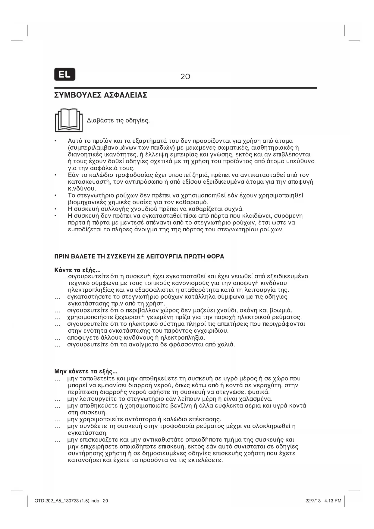 Κατεβάστε τις οδηγίες για το στεγνωτήριο ρούχων σε μορφή PDF δωρεάν! Βρείτε το εγχειρίδιό σας OTD 202D - OK και πάρτε ξανά την ηλεκτρονική σας συσκευή στα χέρια σας. Σε αυτή τη σελίδα δημοσιεύονται όλα τα έγγραφα που απαιτούνται για τη χρήση της συσκευής σας. OTD 202D της μάρκας OK.
