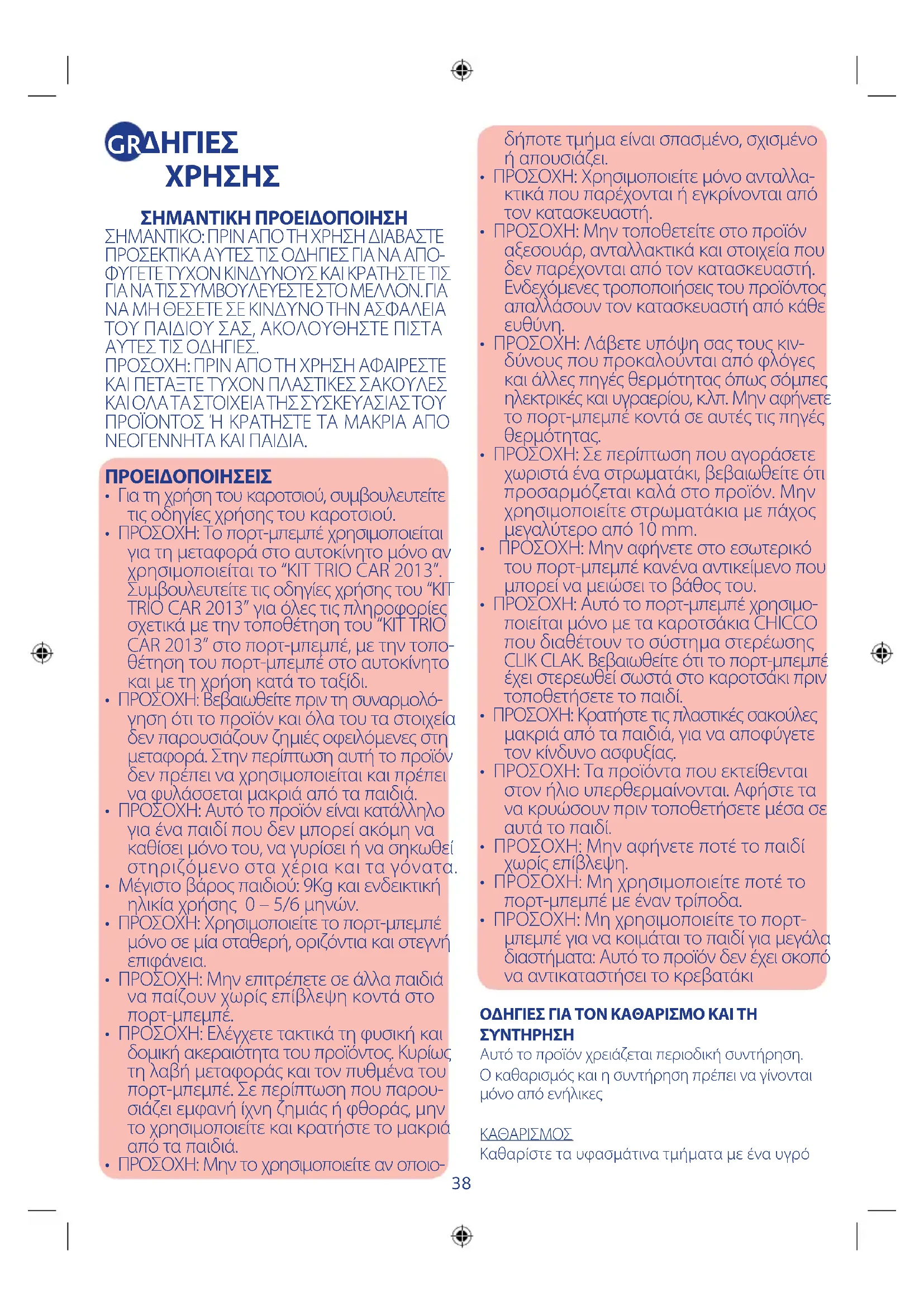 - ΠΡΟΣΟΧΗ: Μη χρησιμοποιείτε το πορτ- μπεμπέ για να κοιμάται το παιδί για μεγάλα διαστήματα: Αυτό το προϊόν δεν έχει σκοπό να αντικαταστήσει το κρεβατάκι ΟΔΗΓΙΕΣ ΓΙΑ ΤΟΝ ΚΑΘΑΡΙΣΜΟ ΚΑΙ ΤΗ
