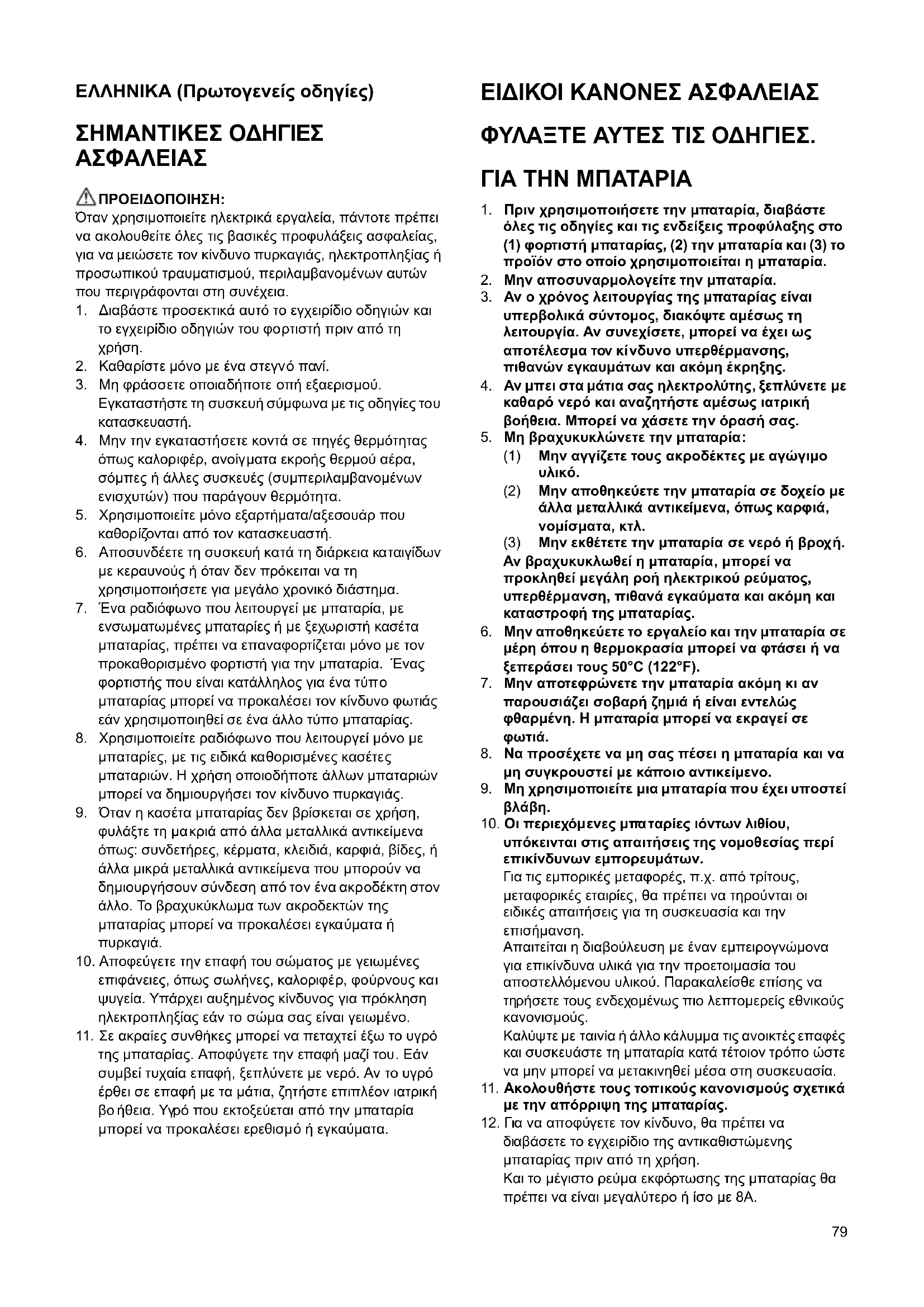 ρό που εκτοξεύεται από την μπαταρία μπορεί να προκαλέσει ερεθισμό ή εγκαύματα. ΕΙΔΙΚΟΙ ΚΑΝΟΝΕΣ ΑΣΦΑΛΕΙΑΣ ΦΥΛΑΞΤΕ ΑΥΤΕΣ ΤΙΣ ΟΔΗΓΙΕΣ. ΓΙΑ ΤΗΝ ΜΠΑΤΑΡΙΑ
