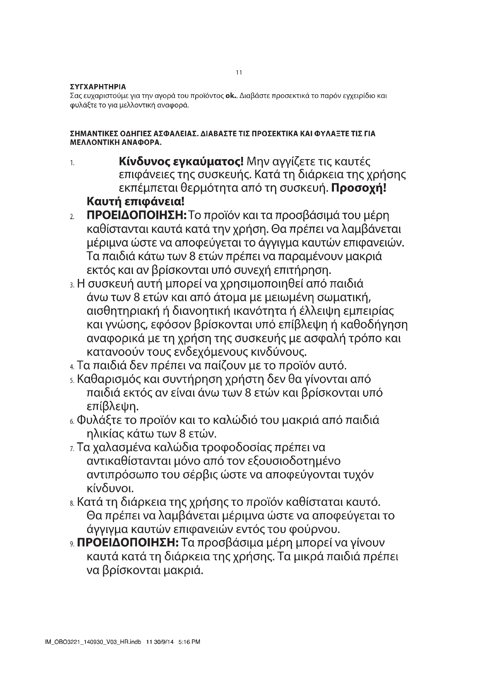 ΣΥΓΧΑΡΗΤΗΡΙΑ Σας ευχαριστούμε για την αγορά του προϊόντος ok.. Διαβάστε προσεκτικά το παρόν εγχειρίδιο και φυλάξτε το για μελλοντική αναφορά. ΣΗΜΑΝΤΙΚΕΣ ΟΗΓΙΕΣ ΑΣΦΑΛΕΙΑΣ. ΙΑΒΑΣΤΕ ΤΙΣ ΠΡΟΣΕΚΤΙΚΑ ΚΑΙ ΦΥΛΑΞΤΕ ΤΙΣ ΓΙΑ ΜΕΛΛΟΝΤΙΚΗ ΑΝΑΦΟΡΑ.