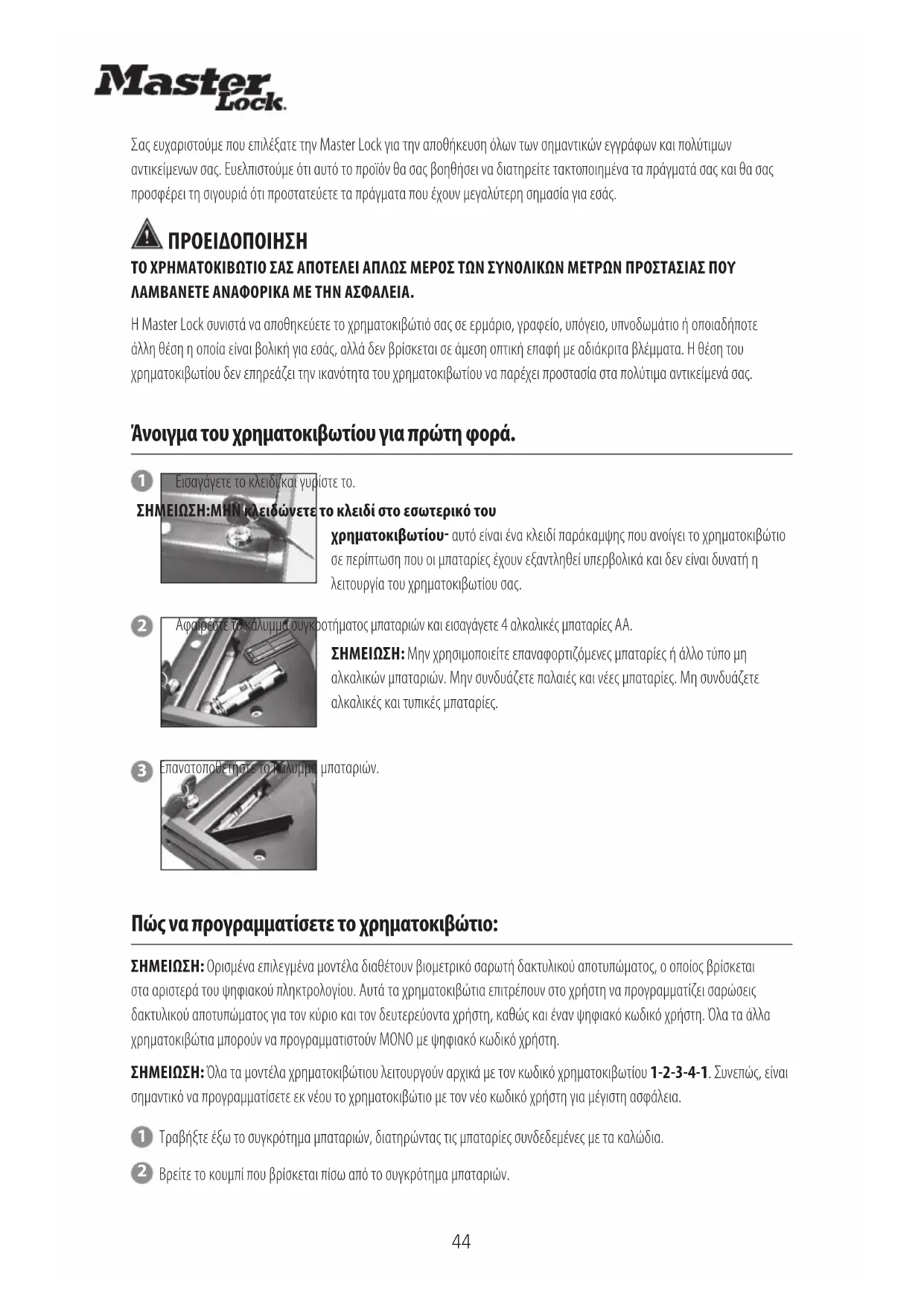 Σας ευχαριστούμε που επιλέξατε την Master Lock για την αποθήκευση όλων των σημαντικών εγγράφων και πολύτιμων αντικείμενων σας. Ευελπιστούμε ότι αυτό το προϊόν θα σας βοηθήσει να διατηρείτε τακτοποιημένα τα πράγματά σας και θα σας προσφέρει τη σιγουριά ότι προστατεύετε τα πράγματα που έχουν μεγαλύτερη σημασία για εσάς.