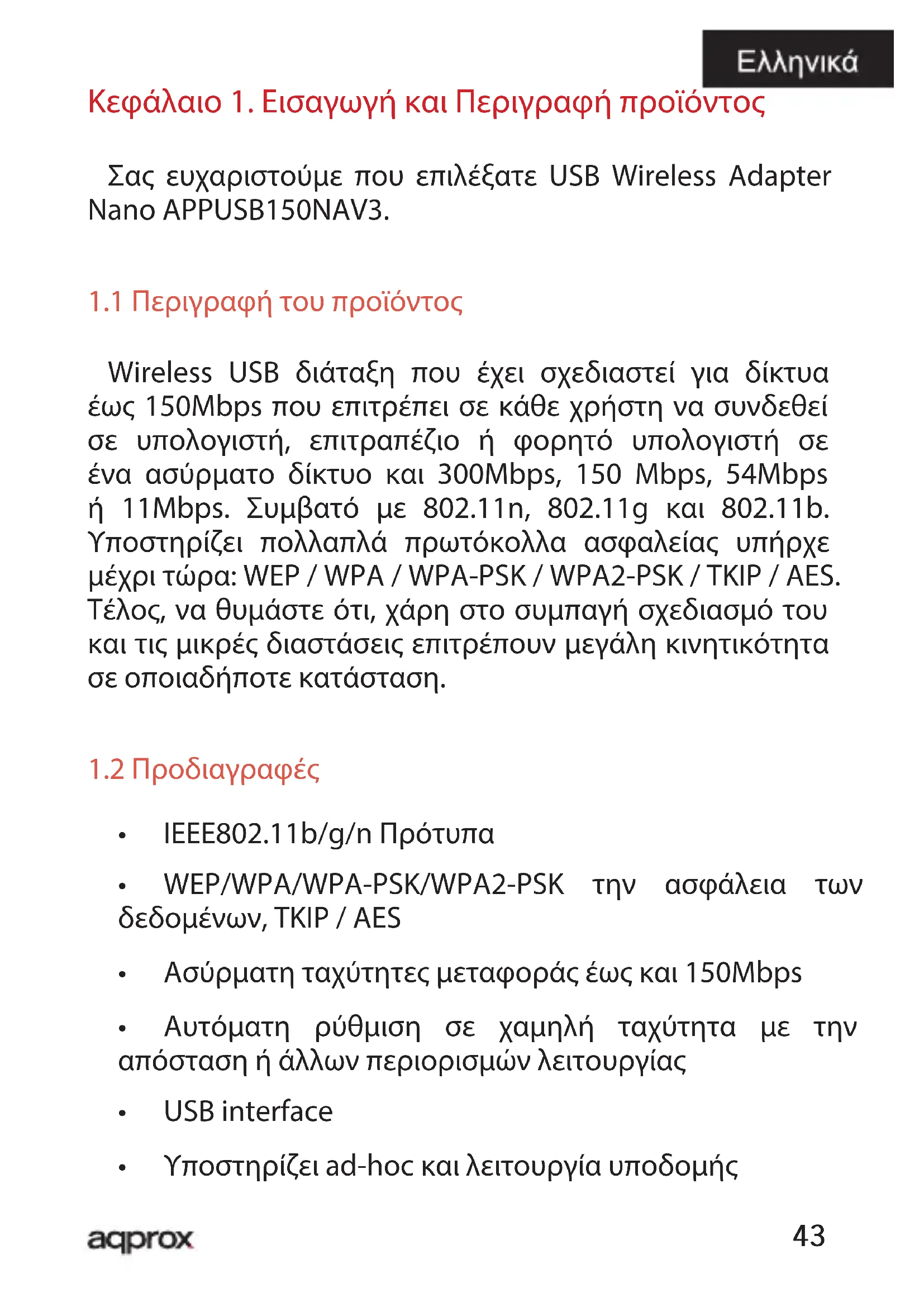 ΕΓΧΕΙΡΊΔΙΟ ΧΡΉΣΗΣ WirelessN Nano USB Adapter Approx