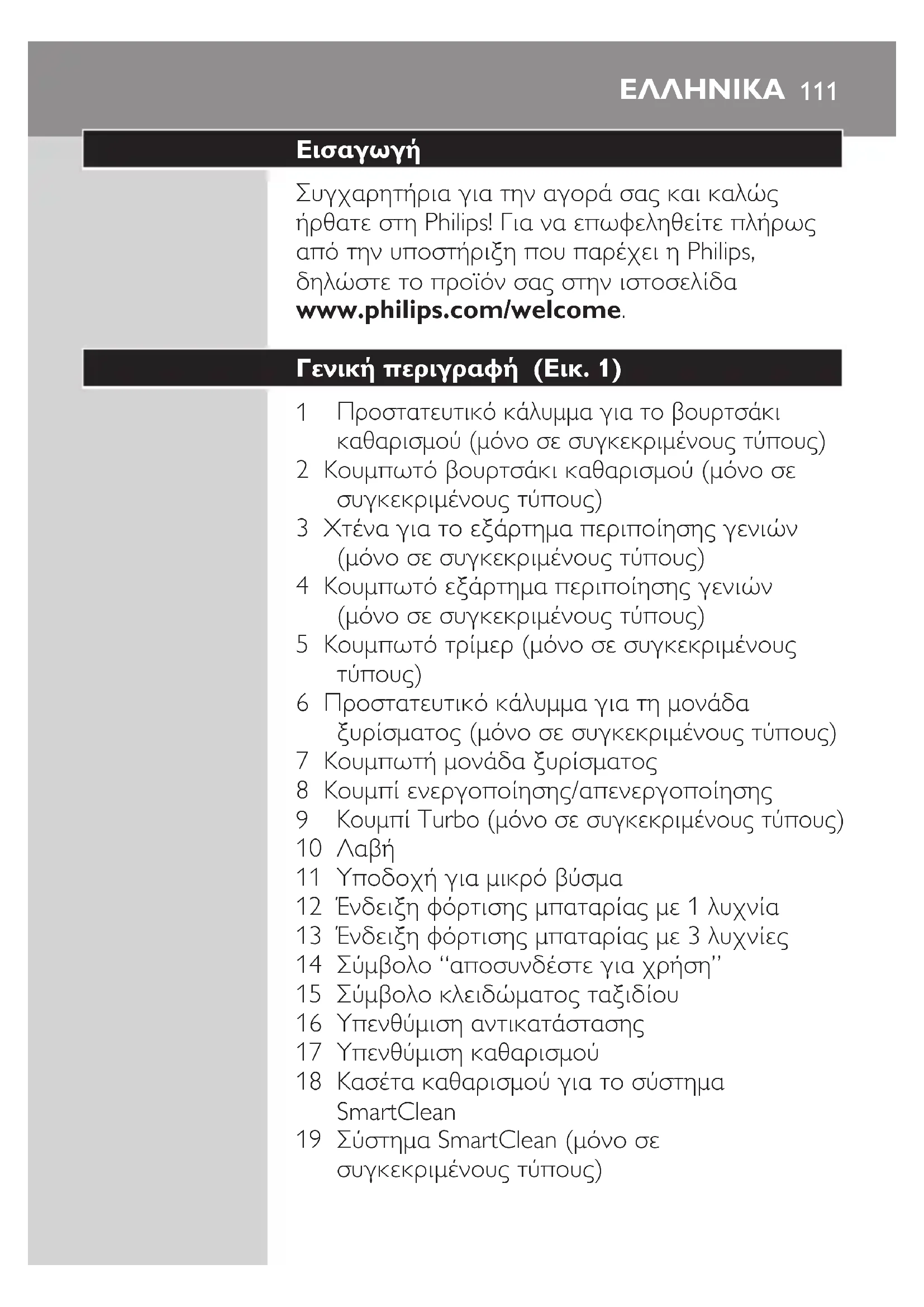 Συγχαρητήρια για την αγορά σας και καλώς ήρθατε στη Philips! Για να επωφεληθείτε πλήρως από την υποστήριξη που παρέχει η Philips, δηλώστε το προϊόν σας στην ιστοσελίδα www.philips.com/welcome. Γενική περιγραφή (Εικ. 1)
