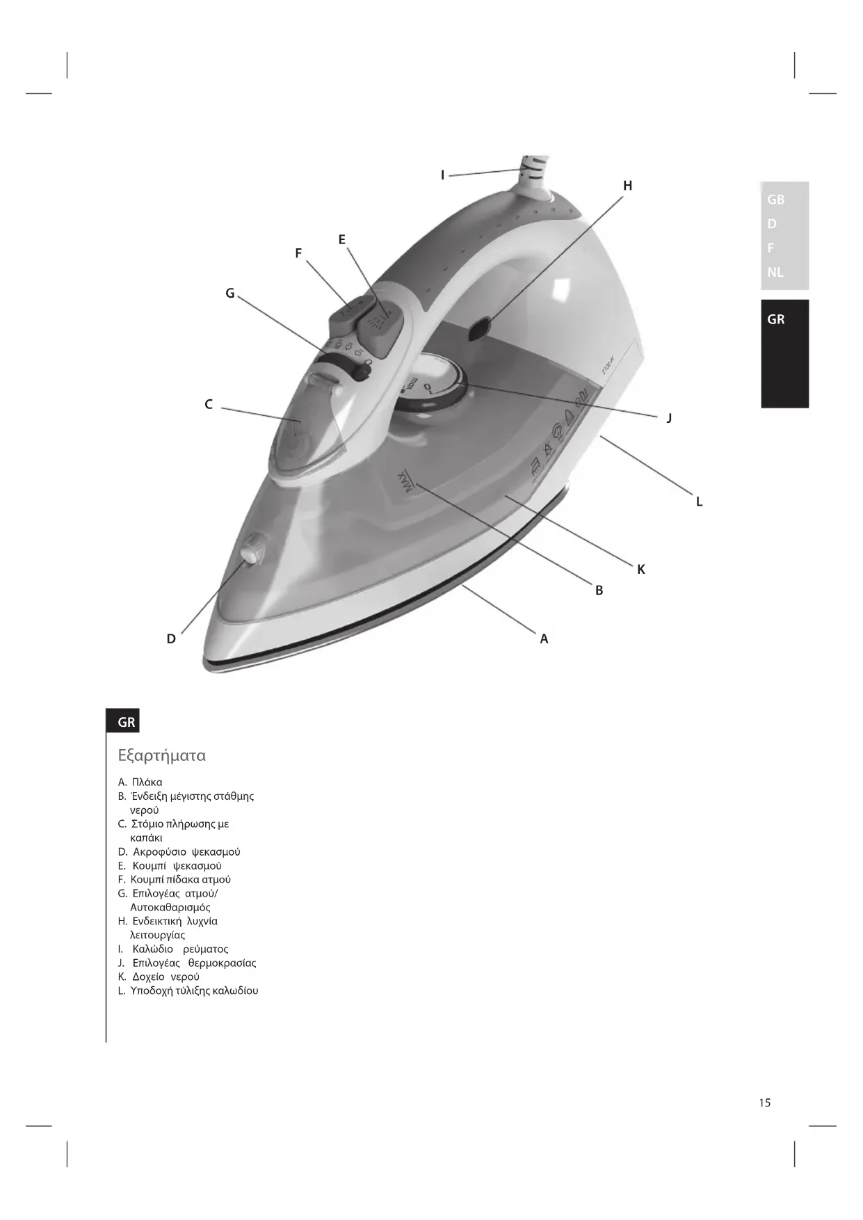 J. Επιλογέας θερμοκρασίας K. Δοχείο νερού L. Υποδοχή τύλιξης καλωδίου Εξαρτήματα16