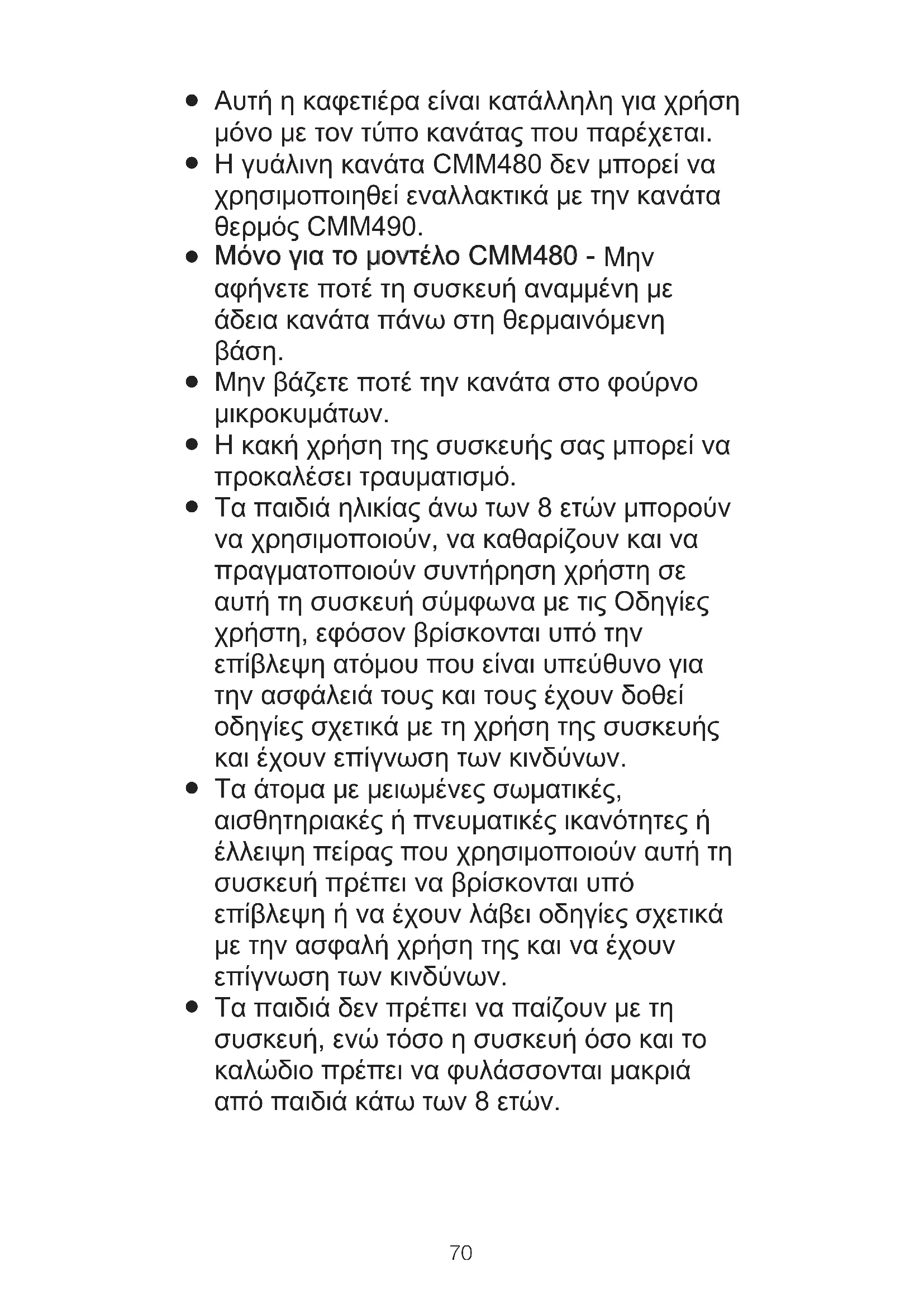 Η γυάλινη κανάτα CMM480 δεν μπορεί να χρησιμοποιηθεί εναλλακτικά με την κανάτα θερμός CMM490.