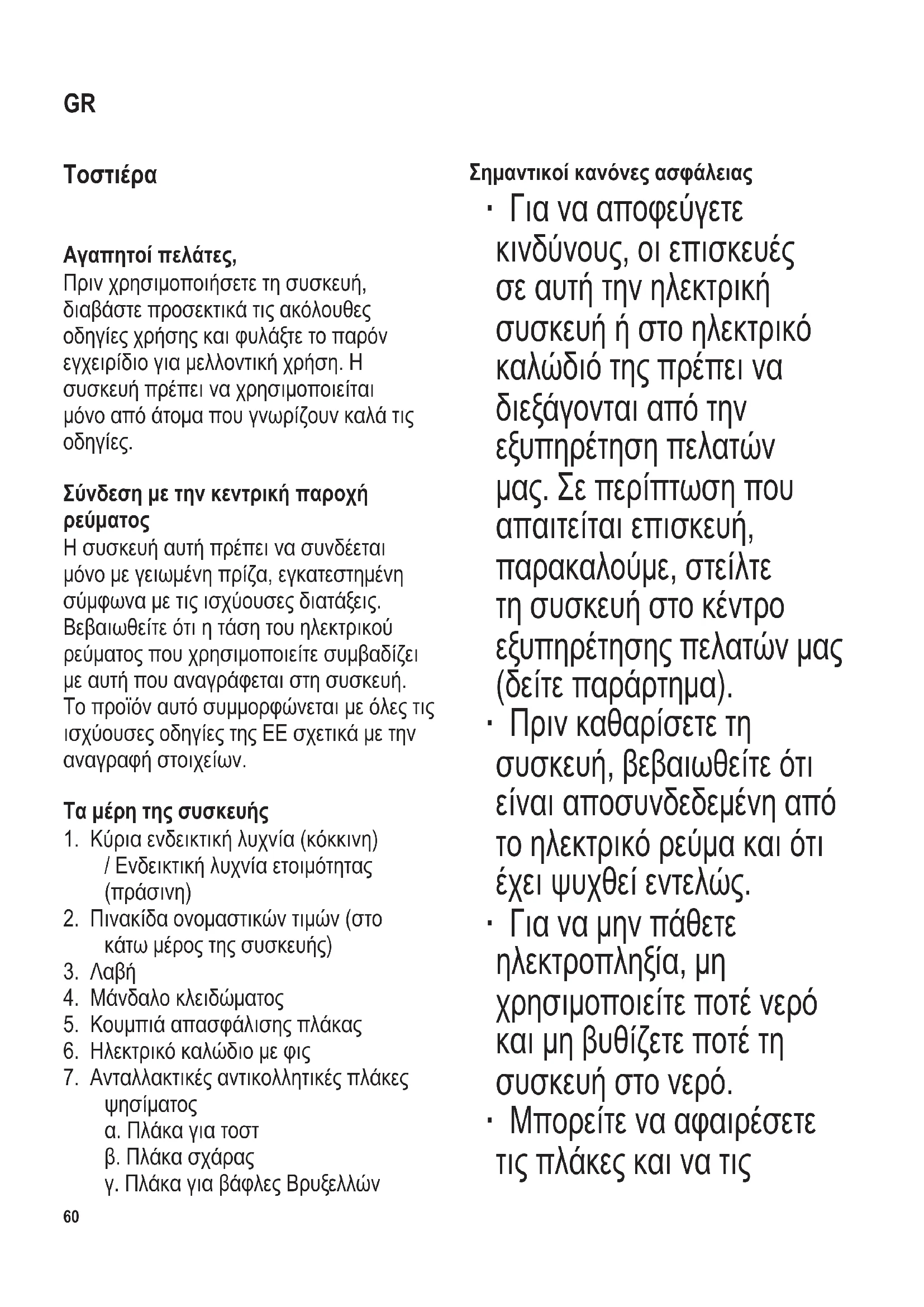 GR Οδηγίες χρήσεως Τοστιέρα 60