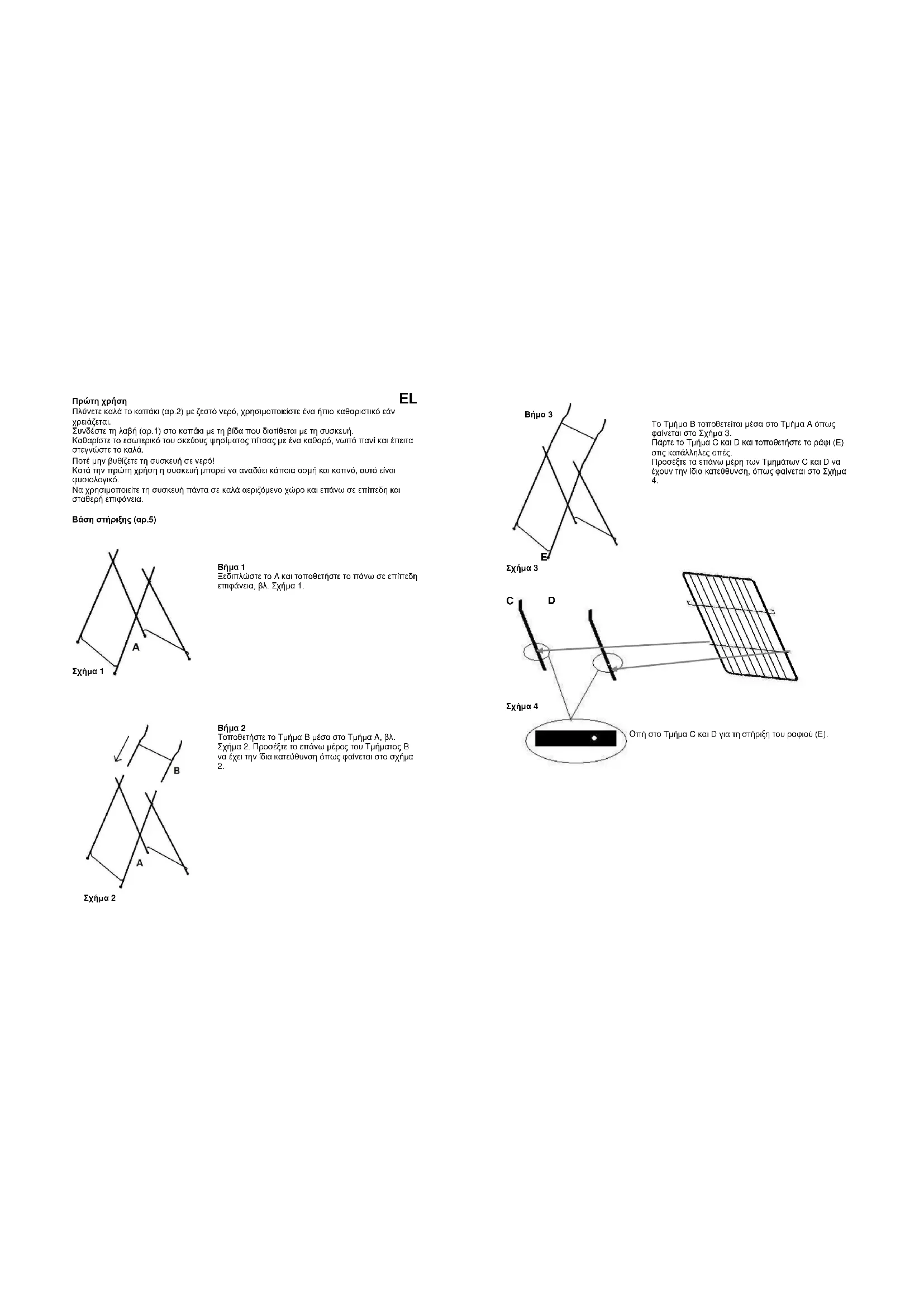 Βήµα 3 Το Τµήµα B τοποθετείται µέσα στο Τµήµα A όπως φαίνεται στο Σχήµα 3. Πάρτε το Τµήµα C και D και τοποθετήστε το ράφι (E) στις κατάλληλες οπές. Προσέξτε τα επάνω µέρη των Τµηµάτων C και D να έχουν την ίδια κατεύθυνση, όπως φαίνεται στο Σχήµα