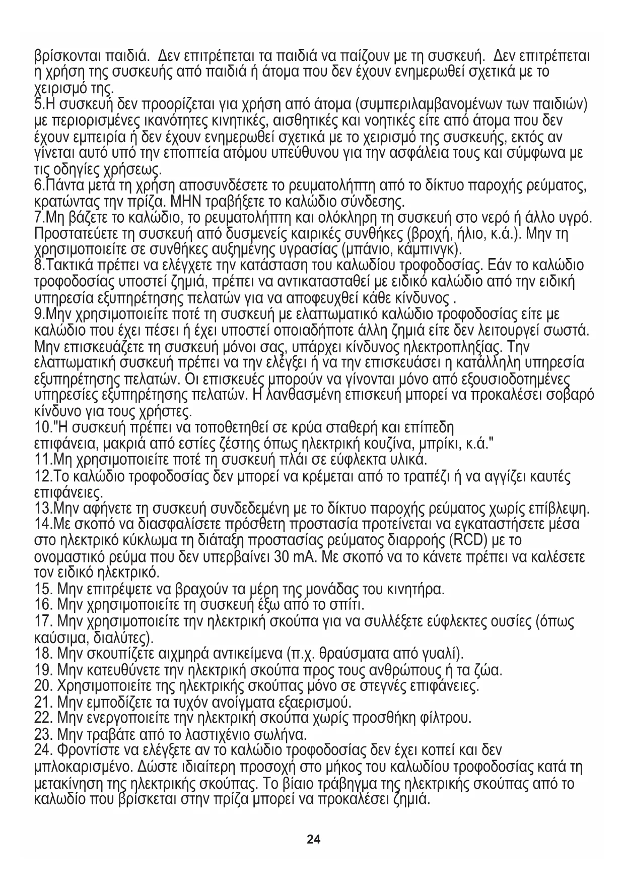 24. Φροντίστε να ελέγξετε αν το καλώδιο τροφοδοσίας δεν έχει κοπεί και δεν
