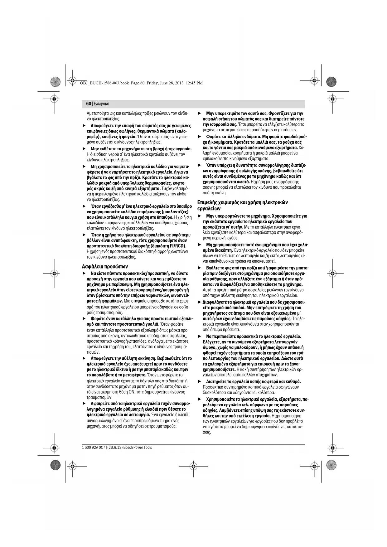 OBJ_BUCH-1586-003.book Page 60 Friday, June 28, 2013 12:45 PMΕλληνικά | 61 Bosch Power Tools 1 609 92A 0C7 | (28.6.13) Προσεκτικός χειρισμός και χρήση εργαλείων