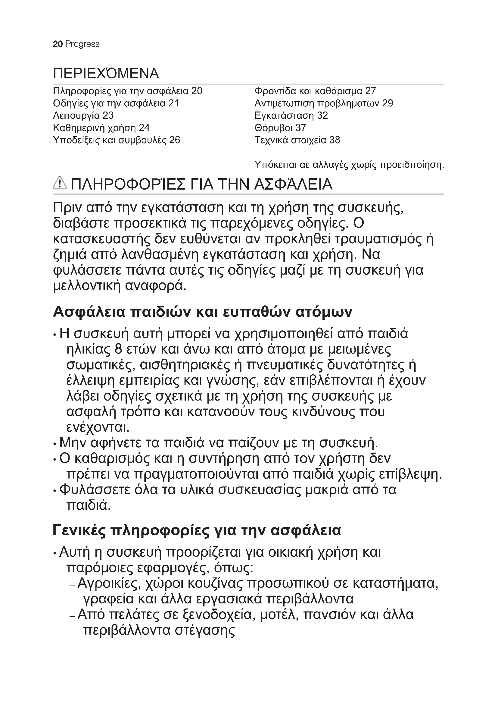 | Πληροφορίες για την ασφάλεια 20 |